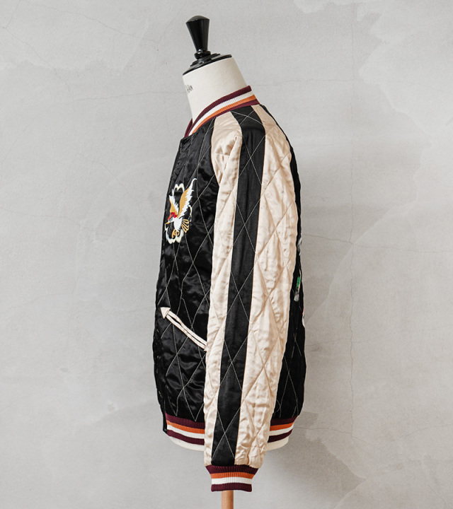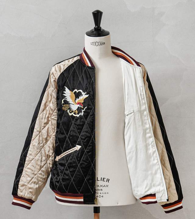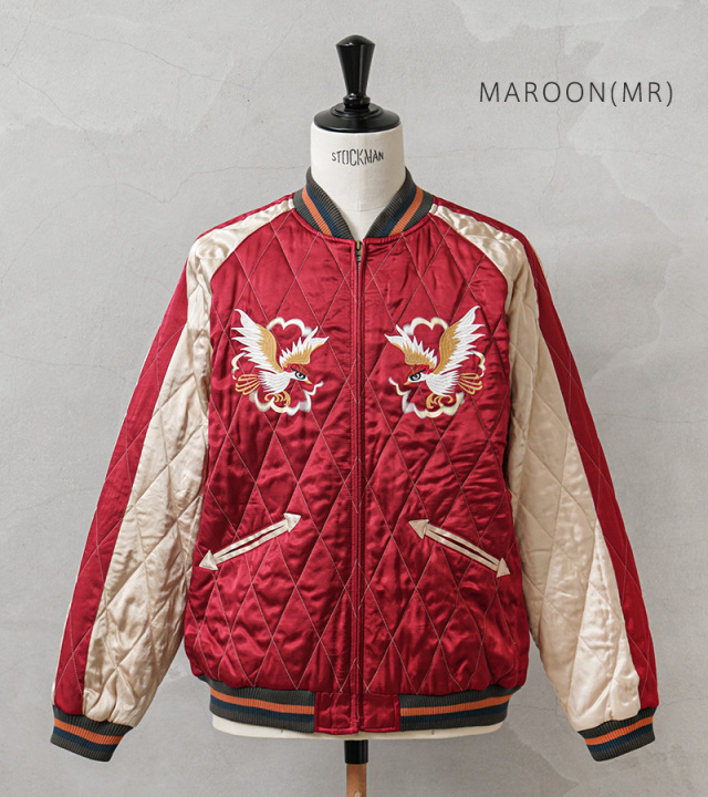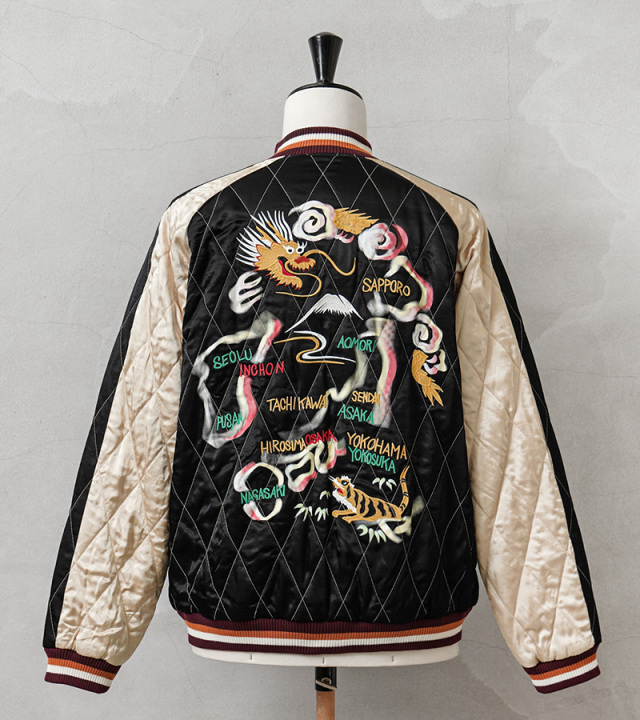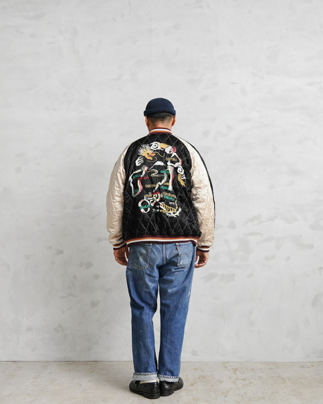 | 商品説明 | HOUSTON ヒューストン キルティング レーヨン スーベニアジャケット MAPのご紹介です。 品名:QUILTING RAYON SOUVENIR JACKET(MAP) 品番:51392 HOUSTONから、ヴィンテージな雰囲気とこだわりを詰め込んだスーベニアジャケットが登場しました。 「お土産・記念品」を意味するスーベニア。 第二次世界大戦後、横須賀市周辺に駐留したアメリカ軍兵士達が記念品として鷲や虎などのオリエンタルな柄、または自分の所属していた部隊のエンブレムをデザインした刺繍を現地のテーラーショップなどにオーダーしたのがはじまりだと言われています。 手の込んだダイヤモンドキルティングステッチを施した、光沢感があり着心地の良いレーヨン素材。丈夫で保温性があり、包まれるような柔らかさで、見た目にもボリューム感が出て華やかな仕上がりになっています。 当時のスーベニア定番であるヴィンテージスカジャンの柄をイメージし、両胸とバック全体に大きくインパクトのあるプリントと刺繍のハイブリッドデザイン。ビンテージ市場でもなかなか出会えない、誰もが振り向く個性的なデザインになっています。定番の龍や地図柄だけでなく、羽を広げた鳥の姿も印象的です。 肩幅サイズを問わないラグランスリーブで、女性でも着用可能。シンプルなコーディネートにプラスワンするだけで、一気に雰囲気を変えてくれる主役級アイテム。男女問わず、ワードローブに加えておきたい一着です。 |
