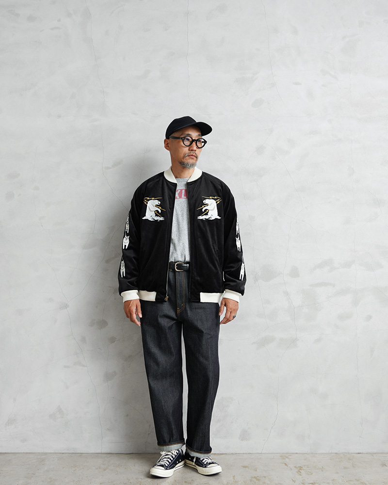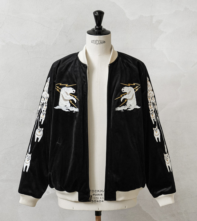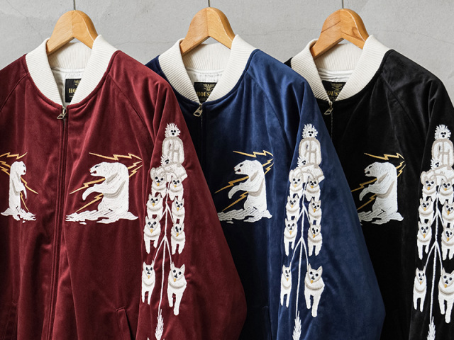 HOUSTONから、ヴィンテージな雰囲気と高級感のあるベッチン(別珍)のスーベニアジャケットが登場しました。「お土産・記念品」を意味するスーベニア。 第二次世界大戦後、横須賀市周辺に駐留したアメリカ軍兵士達が記念品として鷲や虎などのオリエンタルな柄、または自分の所属していた部隊のエンブレムをデザインした刺繍を現地のテーラーショップなどにオーダーしたのがはじまりだと言われています。光沢があり思わず触りたくなるような毛羽感のある別珍素材を使用。中綿を入れることて防寒性を高めており、程よいボリューム感と高級感のある仕上がりになっています。