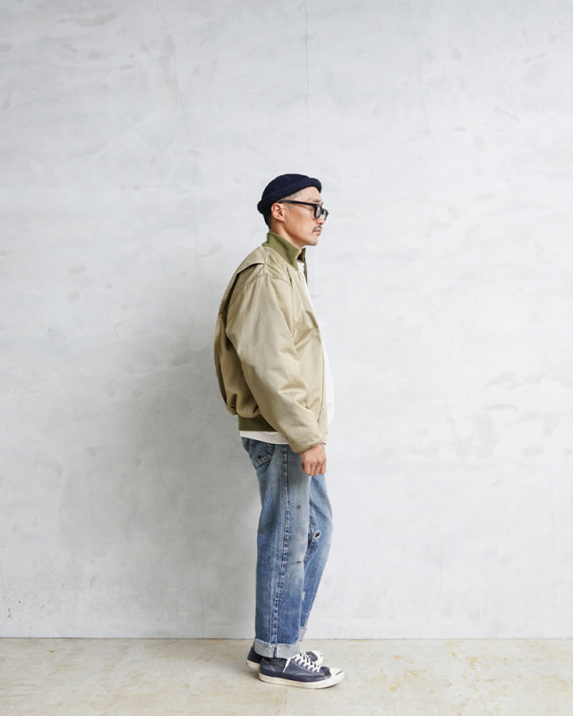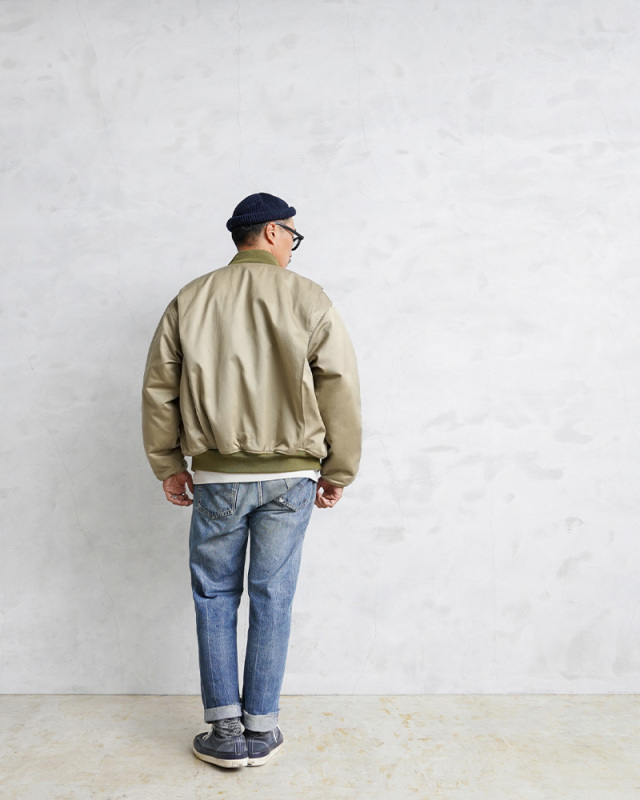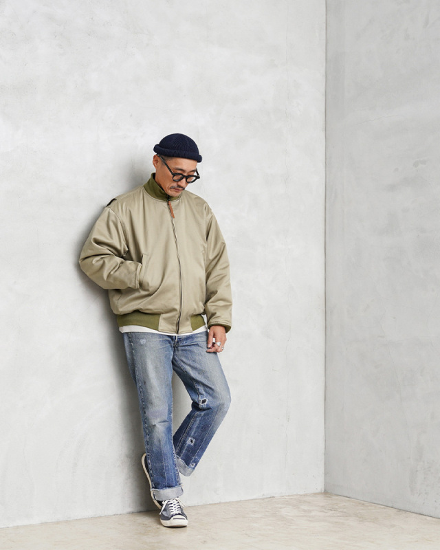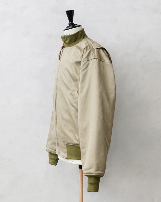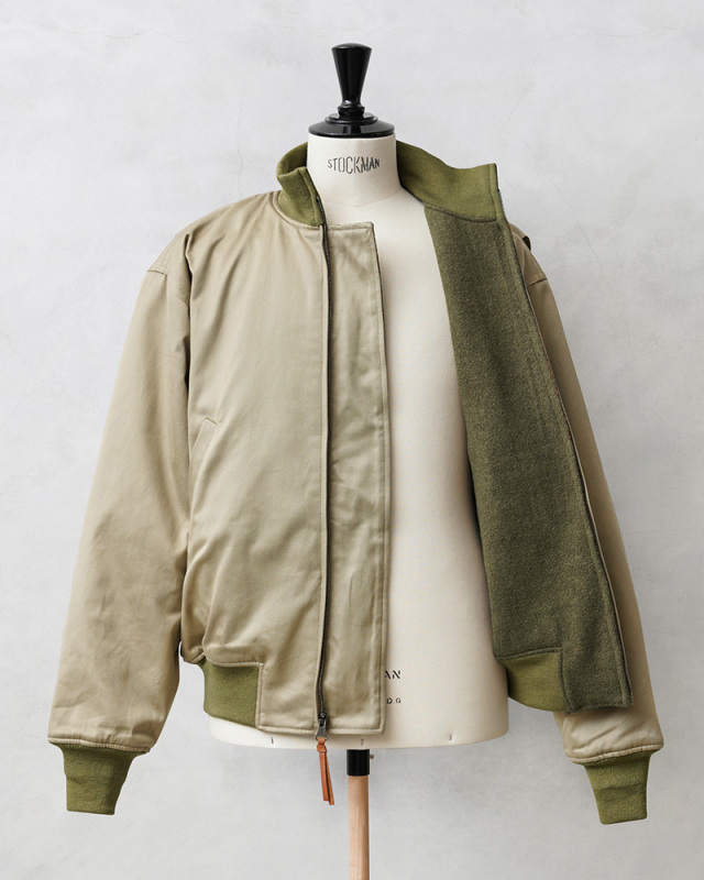 | 商品説明 | HOUSTON ヒューストン TANKERS JACKET(タンカース ジャケット)後期型 日本製のご紹介です。 品番:5B-1X 第二次世界大戦でアメリカ陸軍の戦車部隊が、冬季に着用していたジャケットをHOUSTONが再現しました。 制式名称はウィンターコンバットジャケットと呼ばれ、当時は装備が不足していたことから、フライトジャケットとしても着用されていたという記録も残っている、珍しい経緯のあるジャケットです。 素材にはハリと豊かな光沢感のある日本製のヘヴィーなウエストポイント(通称ウエポン)生地を採用し、コットン生地特有の着用に応じて現れる経年変化が特徴の1つで、双糸の糸を使用し非常に高密度で光沢感のあるなめらかな質感ながら、タフなワークウェアらしい無骨さを兼ね備えており、着込むほどに味の出る素材となっています。裏地にはウール混のポリエステル素材のブランケットを採用し、防寒性も高い1着に仕上がっています。 ニットリブ仕様の襟は、MA-1や L-2などとも形状が異なり、タンカースジャケット特有のスタンドカラー仕様が魅力の1つでもあります。フロントはレザーの引き手が付いたジッパー仕様で、IDEAL社製のジッパーを採用するなど細部にもこだわっています。ジッパー裏には大きめのストームフラップを配し、外気の侵入を防ぐ仕様になっています。両サイドには後期型の特徴である片玉縁のスラッシュポケットがデザインされています。 袖口や裾は襟と同じリブ仕様で、袖口のみ2段リブになっていて、背面には肩から裾まで伸びるアクションプリーツが設けられており、腕の運動を抑制しない作りになっています。 究極的にシンプルなデザインですが、戦車の内部という狭い環境下でも動けるように設計されており、ミリタリーの歴史を語る上で外せない、経年変化も楽しめる育てがいのあるジャケットです。 MADE IN JAPAN |