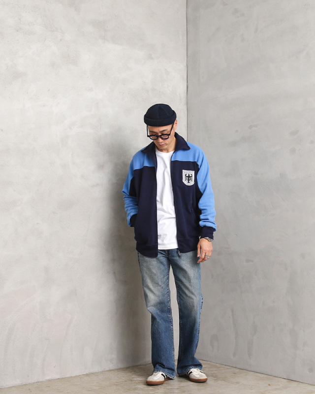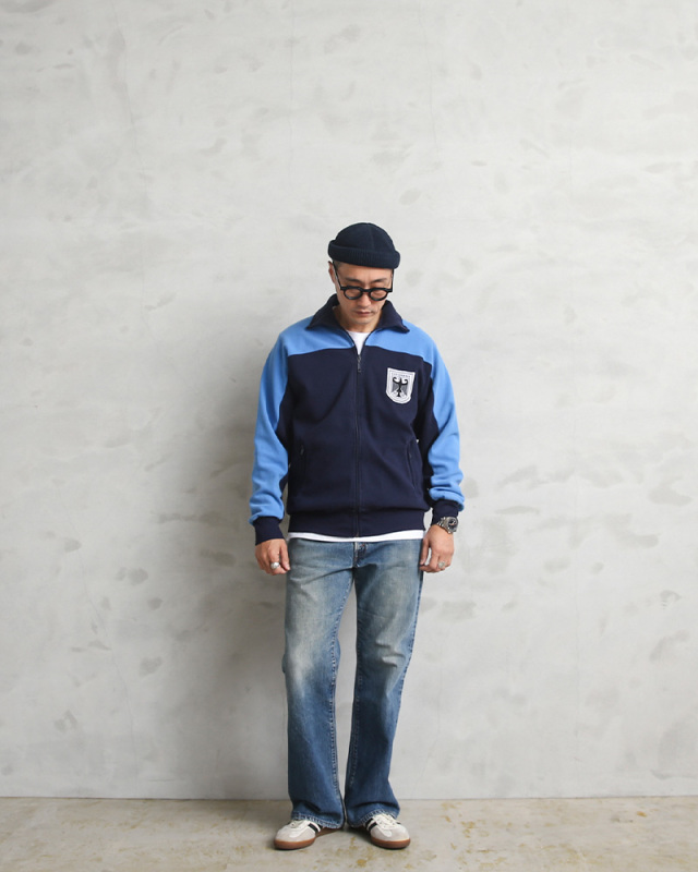近年、放出がいよいよ少なくなってきたドイツ軍 トレーニングジャケットです。 胸のアドラーロゴとツートンカラーがポイントです。素材も鹿の子パイル素材で、アウターにもインナーにもなりオールシーズン大活躍するアイテムです。 レトロスポーティーなルックスが逆に新鮮で、古着やカジュアルテイストがお好きな方に特にお勧めな一着です。 |