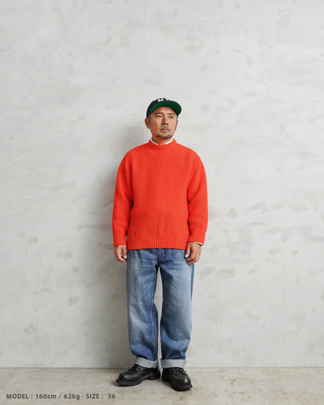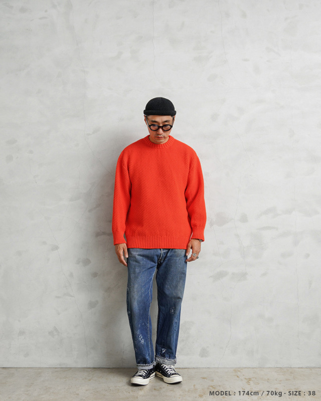 | 商品名 | WAIPER×KERRY WOOLLEN MILLS ケリーウーレンミルズ KW-0040 モスステッチ クルーネック セーター RELAX Lava Orange |