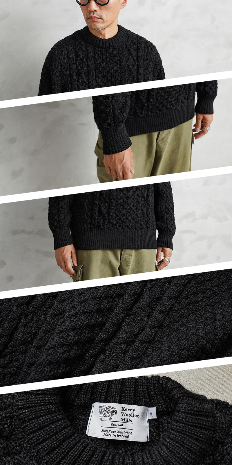 | 商品名 | KERRY WOOLLEN MILLS ケリーウーレンミルズ KW-0054 アランケーブル クルーネック セーター RELAX |
