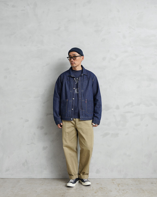 | 商品説明 | Levi’s リーバイス TYPE I トラッカージャケット STONEWASH のご紹介です。 品番:001SA 1936年のType I Trucker Jacketより年代の古い、1900年代初頭に存在したトリプルプリーツブラウスを元につくられたデニムジャケット。 クラシックなノンストレッチデニム製で、パッチポケットが2つ付いたフロントボタンアップのデザイン。 前立ての3本のフロントプリーツとボックスステッチ、むき出しの銅製リベットとフィット感を調整できるシンチバックなどの1stへとつながる魅力も詰まっており、サイドポケットを付け、ゆったりとしたワイドシルエットにアレンジされています。 長年着込んだかのようなヴィンテージの雰囲気を感じさせる色合いとライトウェイトの柔らかな生地感により、こなれ感のあるスタイリングが可能。 独特な存在感を放つヴィンテージデザインと、現代に溶け込むシルエット。ストリート感のあるオーバーサイジングで着用したり、春秋はTシャツ、冬はスウェットやセーターなど、インナーを調整してロングシーズンで楽しむことができるアイテムです。 |