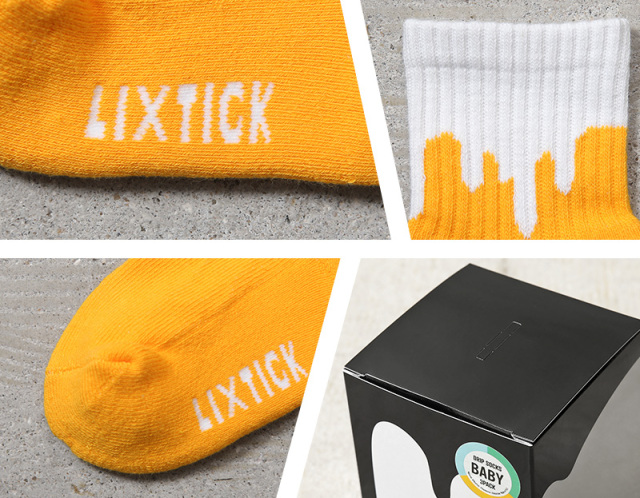 LIXTICK DRIP SOCKSは、肉厚の柔らかな履き心地、高品質な糸、カラーリング、そしてLIXTICKらしい遊び心を兼ね備えた3パックソックスです。お洒落なだけではなく、履き心地にも妥協のない靴下は、靴に合わせて、気分に合わせて、飽きることなくローテーションでき、さり気なく見え隠れするドリップはファッションのアクセントにもおすすめ。伸縮性抜群で~15cm対応なので、成長の早いお子様でも安心して長く愛用可能。LIXTICKの大人気定番ドリップソックスの逆ドリップバージョンで、親子や兄弟でお揃いコーディネートを楽しむことができます。貯金箱にもなる楽しい仕掛けの、ドリップ柄パッケージで、ギフトにも最適です。