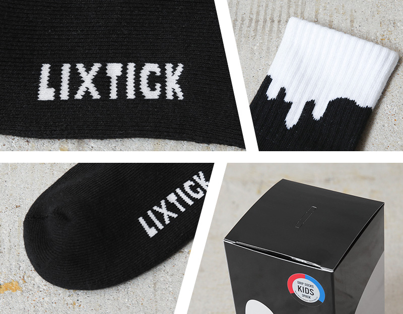 LIXTICK DRIP SOCKSは、肉厚の柔らかな履き心地、高品質な糸、カラーリング、そしてLIXTICKらしい遊び心を兼ね備えた3パックソックスです。お洒落なだけではなく、履き心地にも妥協のない靴下は、靴に合わせて、気分に合わせて、飽きることなくローテーションでき、さり気なく見え隠れするドリップはファッションのアクセントにもおすすめ。伸縮性抜群で18~22cm対応なので、成長の早いお子様でも安心して長く愛用可能。LIXTICKの大人気定番ドリップソックスの逆ドリップバージョンで、親子や兄弟でお揃いコーディネートを楽しむことができます。貯金箱にもなる楽しい仕掛けの、ドリップ柄パッケージで、ギフトにも最適です。