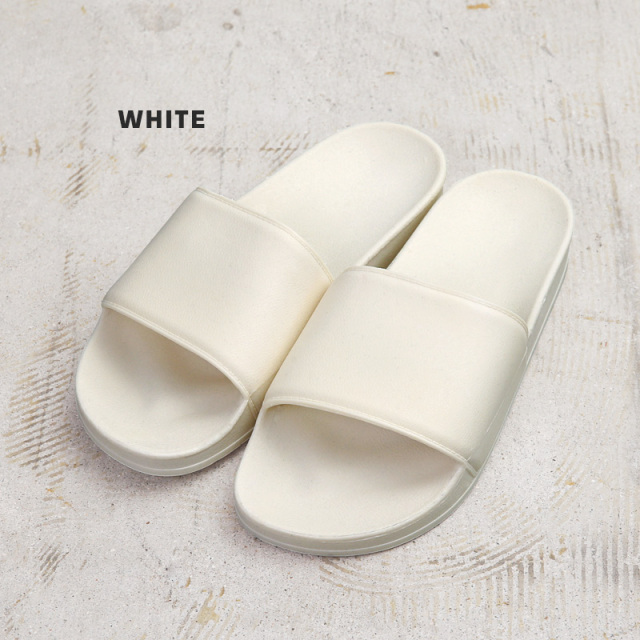 「ロスアパ」こと「ロサンゼルスアパレル」からデイリーに使えるスライドサンダルが登場です。 耐水性のある100%リサイクル可能なプラスチックを採用し、継ぎ目のない金型によりお手入れが簡単で、非常に耐久性に優れた造り。 足を滑らせるだけで着脱できる気軽さが魅力のスリッポンタイプで、底はフラットで擦れにくいため、外履きだけでなく、プールや散歩、またはルームサンダルとしても最適です。 男女問わず気兼ねなく履けるシンプルなデザインと、サスティナブルな素材を使った通年使えるヘビーユース必須のアイテム! 明るいカラーリングと再生可能な素材で製造されているためにできた、色のわずかな違いや色むらもUSA製らしいラフな雰囲気として楽しめます。 ソックスにサンダルを合わせた鉄板スタイルや裸足でちょっとそこまでのワンマイルウェアとして活躍するユニセックスサンダルです。 MADE IN USA |