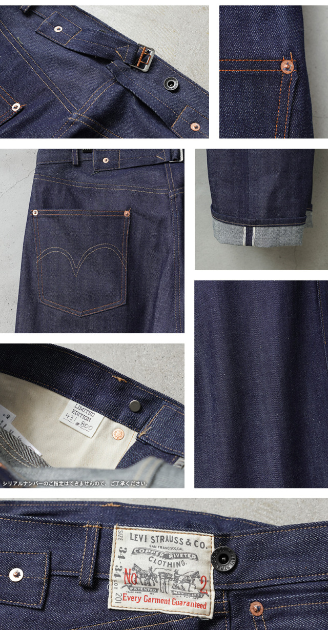 | 商品説明 | LEVI’S VINTAGE CLOTHING 1920’s LOT 201 ジーンズ RIGID 日本製のご紹介です。 品番:001L8-0000 LEVI’S VINTAGE CLOTHINGより世界限定生産800枚、シリアルナンバー入りのスペシャルモデルが入荷しました。今回は希少価値の高い通称「No.2」デニムを復刻したリミテッドアイテムとなります。 1890年にはじめて登場したLot 201(No.2デニム)。当時、501の廉価版として手頃な価格で高品質のデニムを求める労働者向けに生産され、レザーの代わりに布製の「Two Horse」パッチを使用するなど、コストカットが施されたディテールが特徴的で、様々な経済的背景はありつつも、たくさんの人に服を提供するという Levi’s の取り組みの証とも言えるアイテムです。 第二次世界大戦の頃に 501が世界的に有名になったため製造中止となりましたが、現在のビンテージ市場では501ジーンズや、ジャケットに関しても506トラッカーよりも玉数が少なく、非常に希少価値の高いアイテムとなっております。 今回のモデルは1920年代の「No.2」デニムを復刻したモデルで、こちらのLOT 201ジーンズとセットアップでLOT 213 ジャケットも同時リリースとなります。(※ジャケットは別ページ販売) LOT 201ジーンズはこの時代特有のリラックスしたフィット感を忠実に再現しており、生産当時をオマージュしたブルーラインの日本製 Shrink-To-Fit セルビッチデニムを使用。 特徴でもある布製の「Two Horse」パッチ、ブラックのブランドドーナツボタン、ベルトループに加え、サスペンダーボタンとシンチバック付き。アーキュエイトステッチは1本針縫製時代ならではの大きく羽ばたくカモメのような二重アーチ。剥き出しリベットなど、いわば「全部載せ」なモデルです。 取り扱い店舗も限られたスペシャルなリミテッドアイテムです。この機会をお見逃しなく! MADE IN JAPAN ※シリアルナンバーはご指定できません。 ※お一人様につき1点限りでの販売とさせていただきます。 ※返品、交換はお受けいたしかねます。ご了承ください。 |
