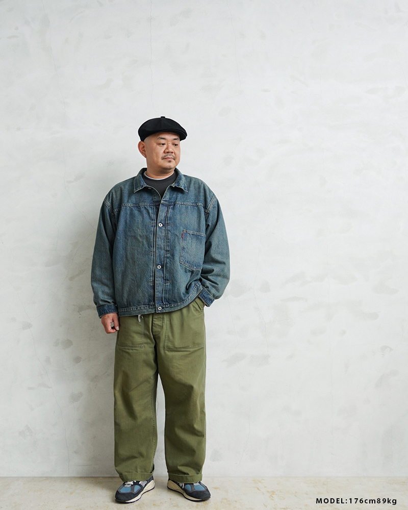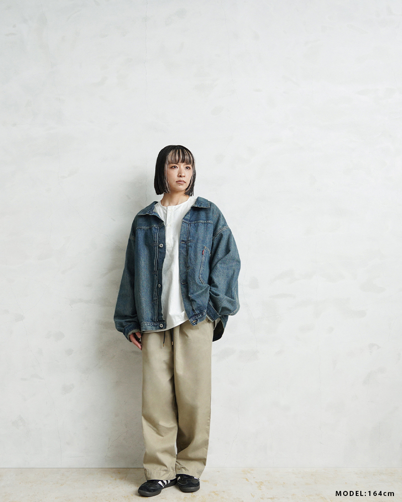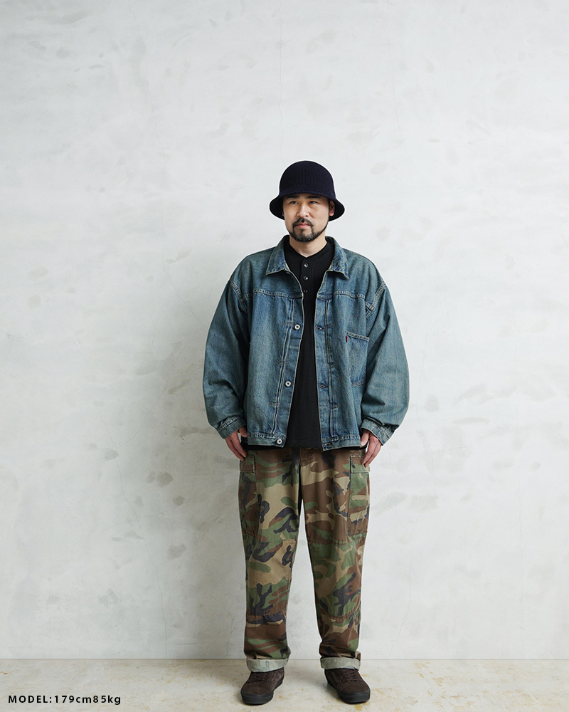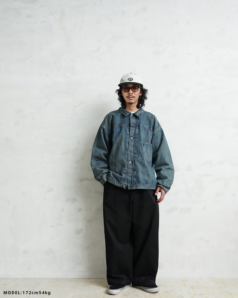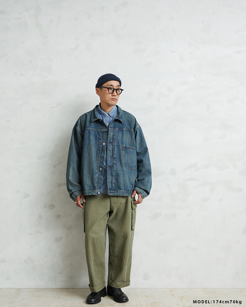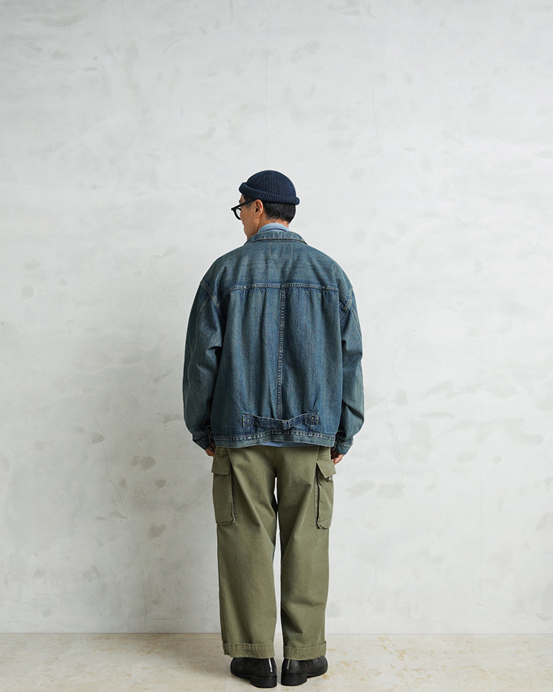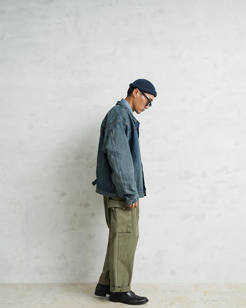 USED加工は着始めから柔らかく着やすいのも特徴。リジッドデニムのように洗濯での縮みはほぼありませんが、しなやかな生地感とトレンド感のある加工で、男女問わずまた違った”48”サイズを楽しめる一着です。