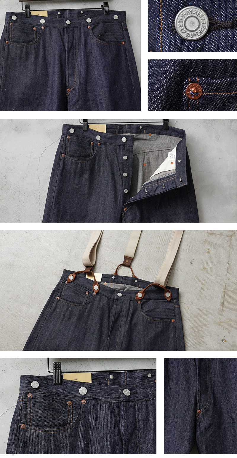 | 備考 | この商品はリジッド(未洗い)モデルの為、ご家庭でのお洗濯後は最大で10%程度縮む可能性がございます。洗濯機で洗う場合は普段ご使用のパンツよりも2インチ程度のサイズアップがおすすめです。 | ||||||