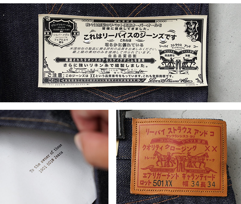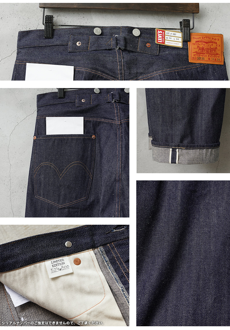LEVI’S VINTAGE CLOTHINGより限定生産800枚、シリアルナンバー入り、1901's 501XX JEANS “KATAKANA”が入荷致しました。1901年のオリジナル501XXをベースに復刻した 「1901 カタカナモデル」 はアーカイヴを再現しつつ、デニムの歴史における転換点と日本のデニム職人の職人技、双方を体現する特別なジーンズ。全てのボタン・リベット・パッチにカタカナをあしらった特別仕様。ギャランティチケットも日本語に翻訳されたコレクタブルなアイテムです。むき出しリベットのバックポケット、シンチバック、サスペンダーボタン、ツーホースレザーパッチ、股下リベット、シングルニードルによるアーキュエットステッチが特徴。プレミアムな日本製セルビッチデニムが使用されています。 取り扱い店舗も限られたスペシャルなリミテッドアイテムです。この機会をお見逃しなく!