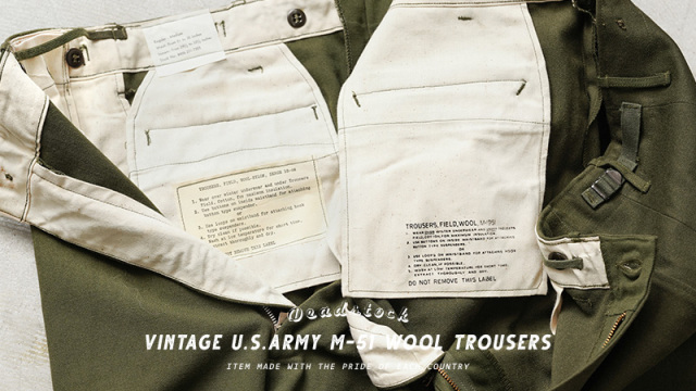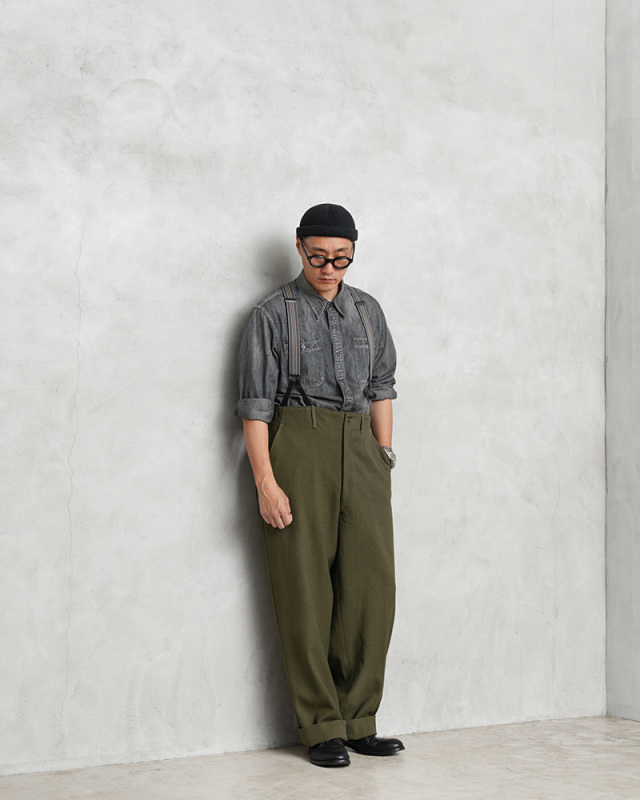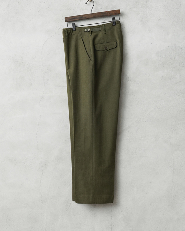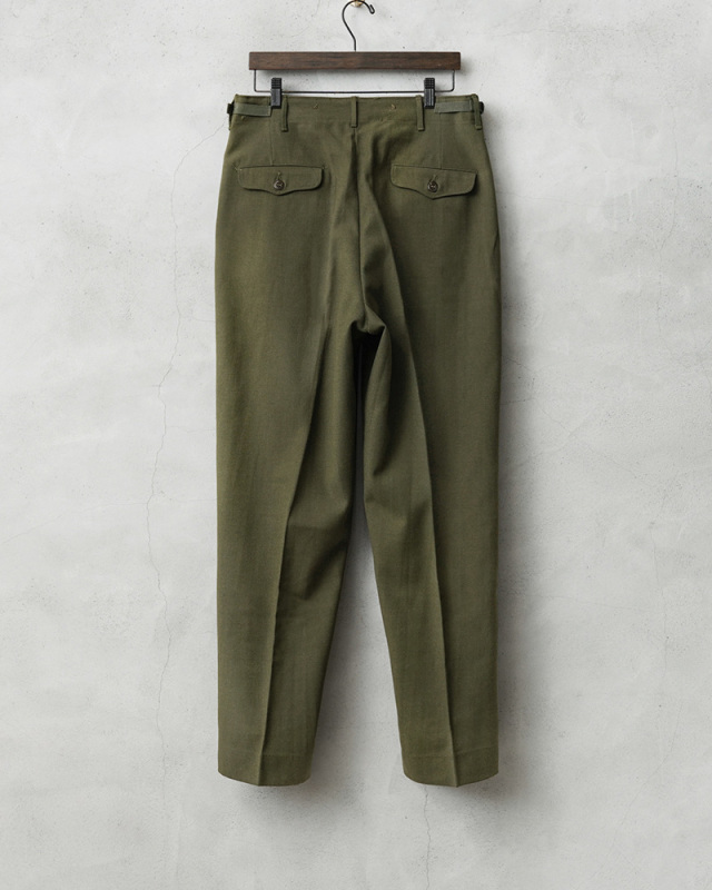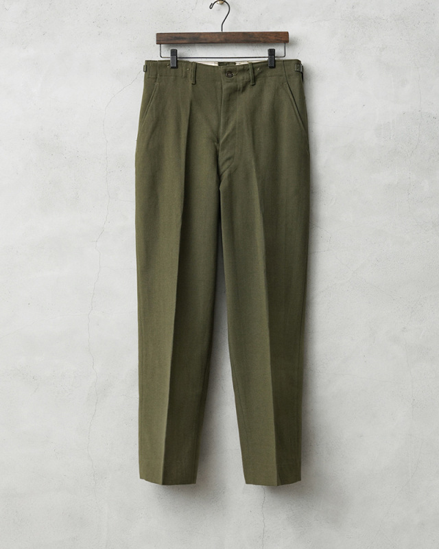 米陸軍において1951年に採用された18オンスの綾織りのウールサージ素材が使用されたODカラーのフィールドトラウザーズです。