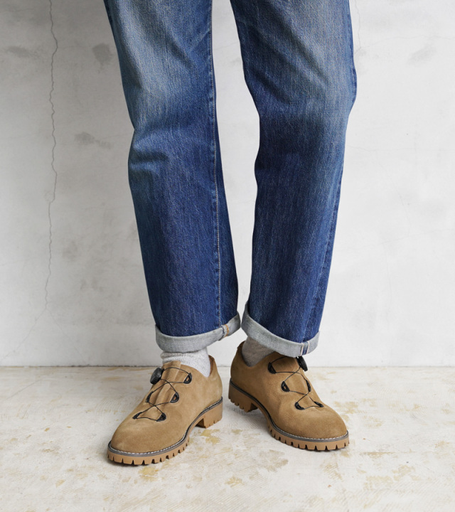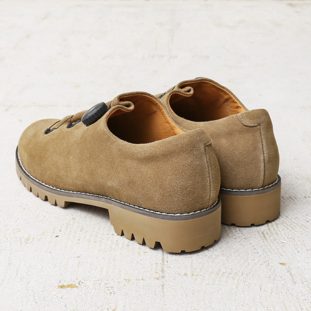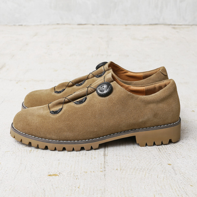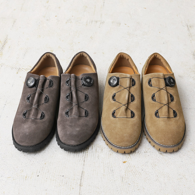 | 商品説明 | molle shoes モールシューズ マウンテンシューズ スエード のご紹介です。 品番:MLS210301-9 無骨さを醸す "マウンテンブーツ" をアレンジし、スウェードレザーを採用した一足。 1960年代のアメリカで人気を博した、登山・ハイキング・トラベルといった多目的なアクティビティに対応できる、いわゆるマウンテンシューズ。 革の高級感を残しつつ、急な雨でも安心な撥水加工を施したスウェードレザーと、登山靴、ワークブーツ、スニーカーなど様々な靴のソールに使用されているイタリアのソール専門メーカー「Vibram」のソールを使用。 さらにシューレースの代わりにダイヤルを回すとワイヤーが締まり足をホールドし、反対へ回すとロックが解除できるという、簡単なサイズ調整と最適なフィット感を実現した「FREELOCKシステム」を搭載。 クラシカルなデザインと、その特徴的なフォルムはそのままに、高機能な現代的アップデートを施し、伝統と革新を融合させた「シューレースレス」な「レザーシューズ」 暖かみがあり、上品さも併せ持つスウェードレザーのアッパーは、履くほどに色や質感の味わいが増して経年変化も楽しめます。 老若男女を問わず、カジュアルからフォーマルスタイルまで幅広く合わせていただけます。 |