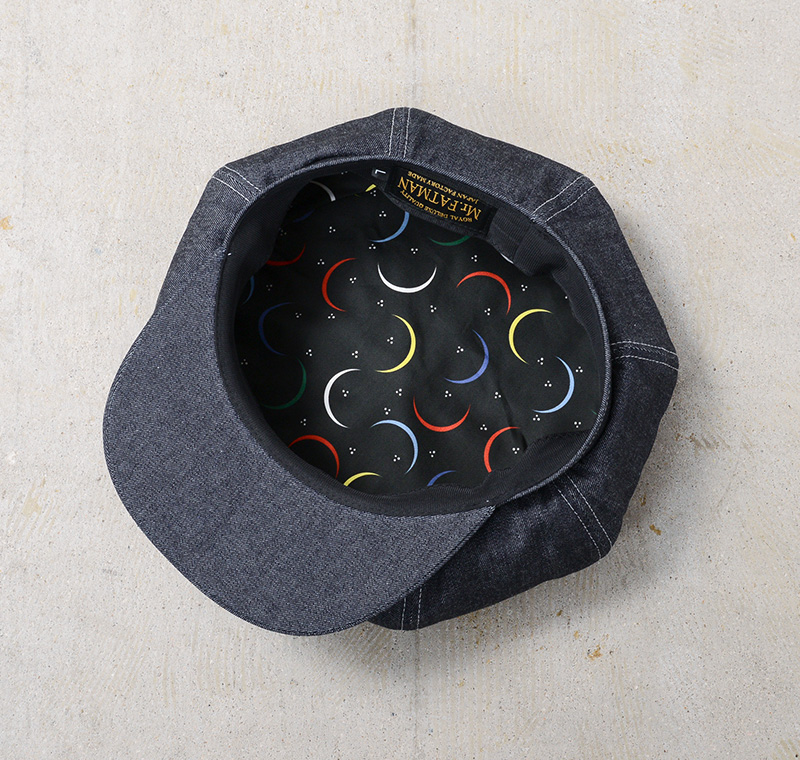 Mr.FATMAN ミスターファットマンより、大きめのフォルムで存在感抜群のジョニーキャスケットが登場です。素材はコットン100%生地を使用。さらりとした肌触りで被り心地良くまた着用を繰り返すことで時間の経過とともに風合いの変化を楽しむことができます。 ブラックは上品なツイル素材、インディゴはホワイトステッチが映えるデニム仕様となっております。ホワイトステッチを効かせた8パネルに裏地は50年代のアトミック柄を彷彿させる遊び心のあるデザイン。 縦長のシャープな作りに適度なボリューム感でキャスケットならではのワークテイストな雰囲気と上品な印象を与えてくれます。