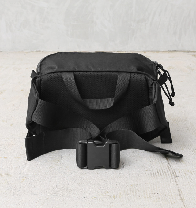 ボディバッグとしてもヒップバッグとしても使いやすく設計されたHIP MONKEY。 コンパクトな見た目ですが、350mlの飲料缶なら6本は入るほどの容量を誇り、携帯電話・ペットボトル・鍵・財布・水筒などがすっぽり収まります。フロントポケットにはキークリップ付きで、メインコンパーメント内にも大き目のジッパーポケットを配置。鍵、携帯、財布、定期など、貴重品の整理にも便利な仕様となっています。コンプレッションストラップ付で、荷物が少なくても、しっかりホールド。メイン収納部分には止水ジッパーを使用しているので、急な雨でも安心です。 背面は柔らかなメッシュパッド仕様になっており、ウエストベルトは腰に巻いても斜めがけでも、快適にフィットするようデザインされています。