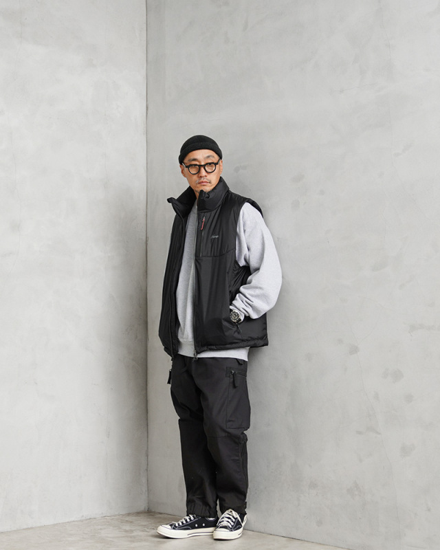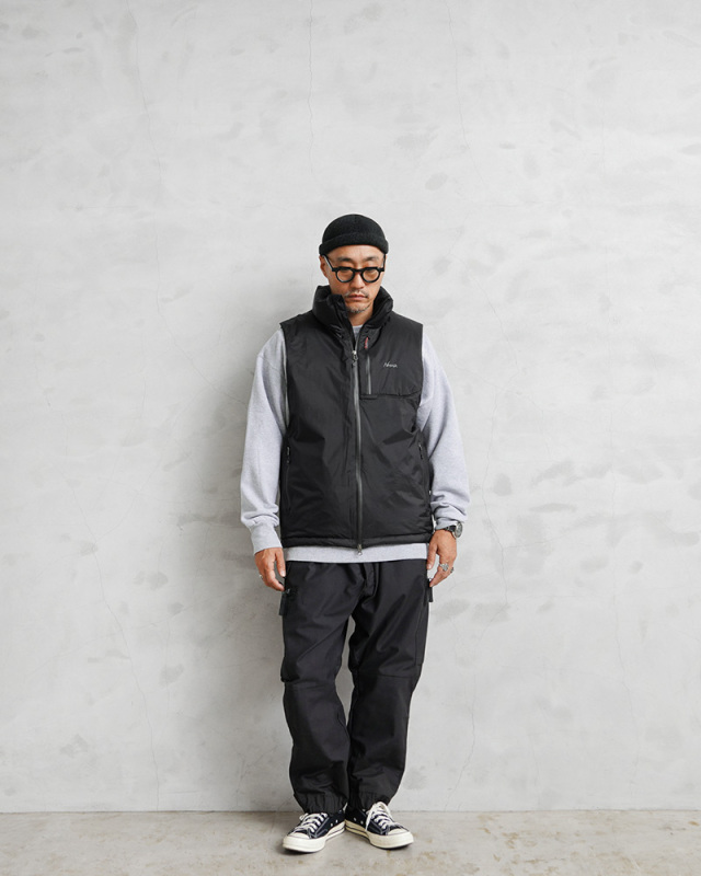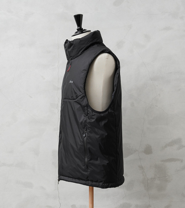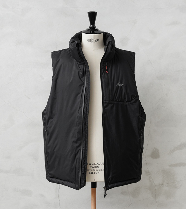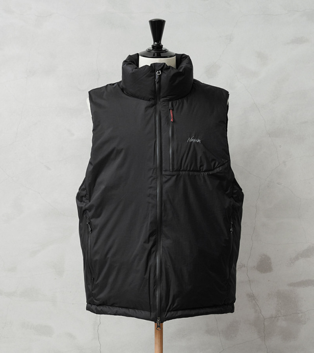 NANGA独自の防水透湿素材、オーロラテックス®を採用。オーロラテックス®はNANGA独自の多孔質ポリウレタン防水コーティング素材です。防水性を高めると蒸気透湿性が低下するという問題を高レベルで解決した素材で、超微粒子をポリウレタン樹脂に含有させることで多数の微細孔を形成させ、雨の粒子を防ぎながら水蒸気は楽に放出させるという、これまでのコーティング素材にない特性を実現しています。 シンプルながらも優れた機能性で、インナー次第で3シーズンにわたって活躍するダウンベスト。山やキャンプといったアウトドアシーンはもちろん、スタイリッシュな街着としても活躍する汎用性の高いアイテムです。