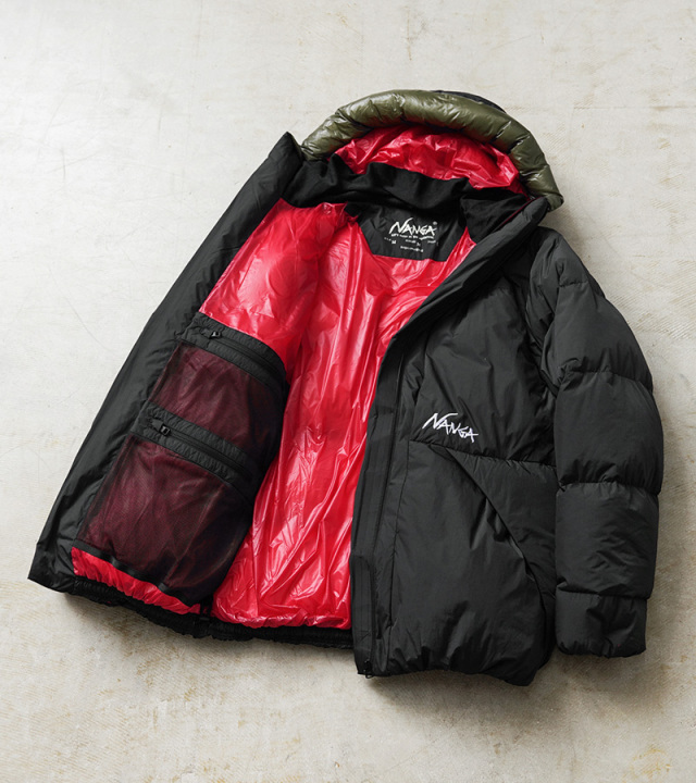 | 商品説明 | NANGA ナンガ NOTHERN LIGHTS DOWN JACKET(ノーザンライト ダウンジャケット)のご紹介です。 品名:NOTHERN LIGHTS DOWN JACKET 品番:NW2341-1C556 アウトドアではもちろん、タウンユースとしても絶大な人気を誇る「NANGA ナンガ」から、 発売までに3年という時間を費やして完成した、ナンガの中でも最高クラスの暖かさを誇る「NOTHERN LIGHTS DOWN JACKET(ノーザンライト ダウンジャケット)」が入荷しました。 NANGAがこれまでのダウン研究から導き出した最適なダウン封入量で保温性を向上させ、中綿の羽毛には、770FP(フィルパワー)のスペイン産ホワイトダックダウンを使用していますので、ふくらみをしっかり感じていただけます。良い環境で通常よりも長い期間飼育された水鳥から採取される原毛は丈夫で反発性があり、その原毛を使った羽毛製品は長く愛用してもへたりにくくロフトが保たれます。 産地の選定や品質の追求、国内での洗浄・精製とこだわり抜いた最上級のクオリティ。羽毛は、超撥水ダウンUDD DXを使い、内側の羽毛を水に強い仕様に。超撥水ダウンUDD DXとは、従来の羽毛の弱点とされてきた水への弱さを解決するため、羽毛そのものに超撥水加工を施したダウンのこと。フィルパワーは770FP。雨や雪で濡れた状態でもロフトが損なわれず、暖かさをしっかり保ちます。羽毛と撥水剤の樹脂を分子レベルで結合し、細かな粒子の壁を作ることで水の侵入を防ぐ「湿気を通すが、水を吸わない」高性能なダウンです。 表生地は、羽毛の飛び出しを極力防ぎながら、タスラン加工糸を横糸に使い、ナイロン100%ながらも柔らかく、コットンライクな独特のマットな質感を実現。内側の裏生地とフードは、切り替えられたカラーが特徴的なデザインに。フードは、頭に合わせた丸みがあり、風をしっかり防ぐ設計になっており、デザイン性だけでなく機能性も両立しています。 袖口や裾にはシャーリングを設けることで冷気の侵入を防ぐだけでなく、丸みのあるシルエットでボリューム感がしっかり出ています。見た目的にも高い保温性を感じられます。 両胸のファスナーポケット、ウエスト位置のハンドウォーマーポケットは手の出し入れがしやすい使いやすい仕様、さらに内側には両側に3つのメッシュポケットを搭載しています。フードや裾にはドローコードが付属し、フロントにはNANGAのロゴ刺繍がデザインされています。 NANGAが長い月日をかけて作り出した自信を持ってお届けできる最高峰のダウンジャケットです。 MADE IN JAPAN |
