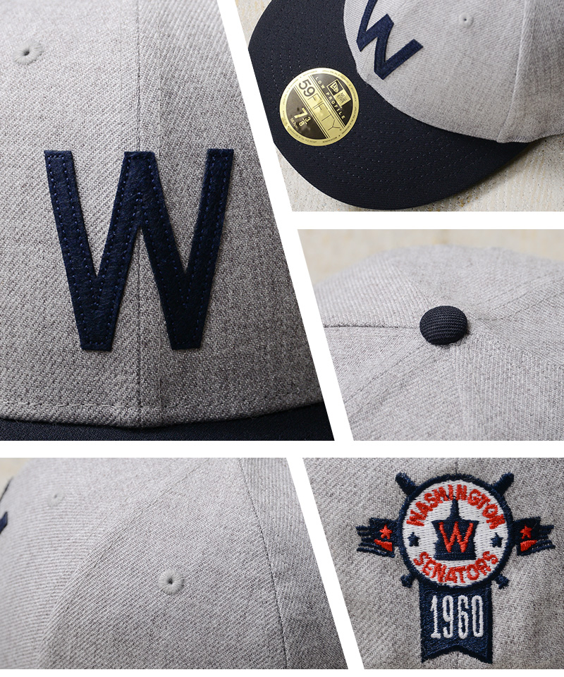 数多く存在するNEW ERAのCAPのなかでもWAIPER別注でカスタムした唯一無二なデザインで、ミリタリーファッションに馴染むCAPをテーマにトラディショナルな雰囲気に仕上げました。実はナショナルズではなくテキサス・レンジャーズの前身である【ワシントン・セネターズ】クラウンには1926年に採用されたロゴをバックには1960年のデザインのアーカイヴの中から相応しい物をチョイスして使用しました。ボディは、ブランドを代表する59FIFTYモデルの中でも、クラウンが低くデザインされた【LP 59FIFTY】モデルを使用。
