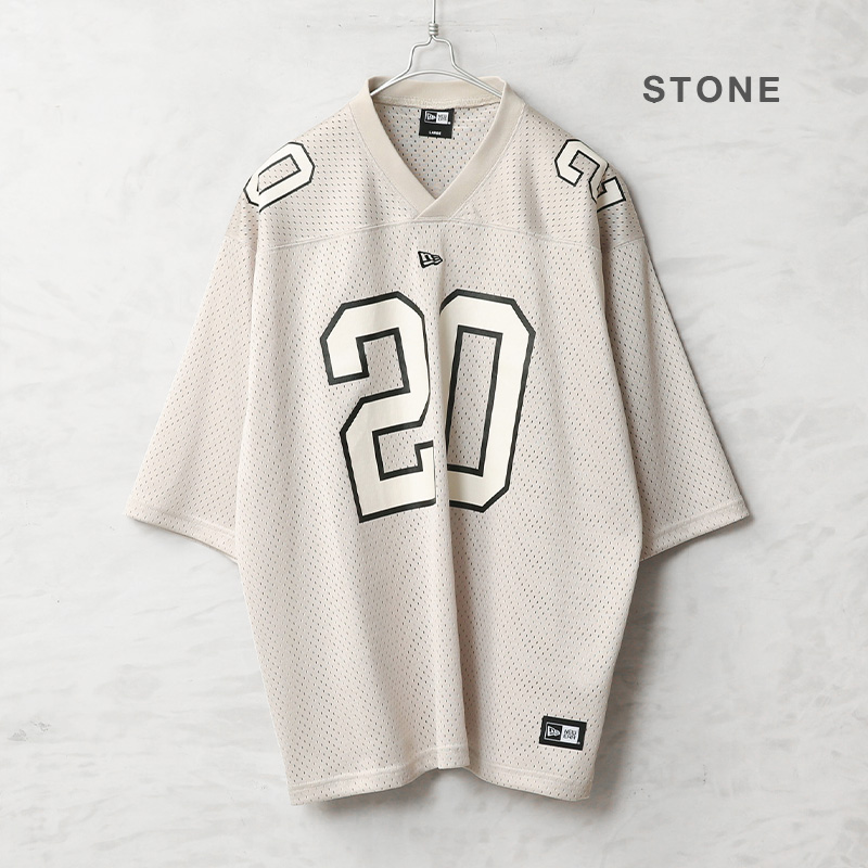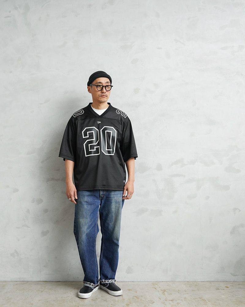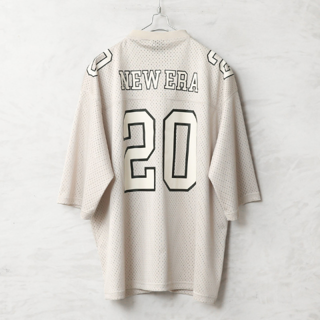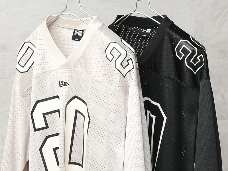 NEW ERAからタウンユース仕様にアレンジしたフットボールジャージの登場。 アメリカンフットボールシャツをベースに、現代的なシルエットへとアップデートされた一着です。通気性に優れたメッシュ素材を採用し、軽やかで快適な着心地を実現。ゆとりのあるリラックスフィットに、フロントやバックに配されたナンバリング「20」が印象的なデザインです。この“20”はブランド創業年である1920年を象徴する数字を落とし込んだもので、アイコニックでありながらブランドのルーツを感じさせるディテールとなっています。