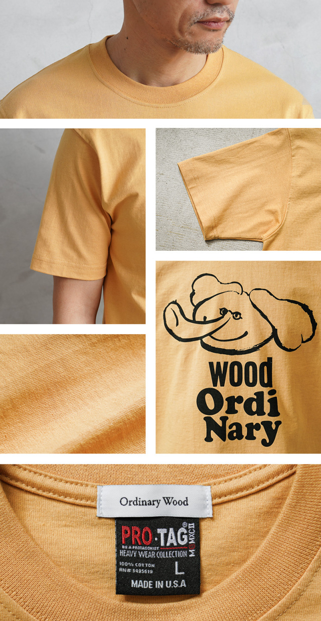 | 商品説明 | Ordinary Wood オーディナリーウッド×PRO-TAG プロタグ 上鼻象 イラスト Tシャツのご紹介です。