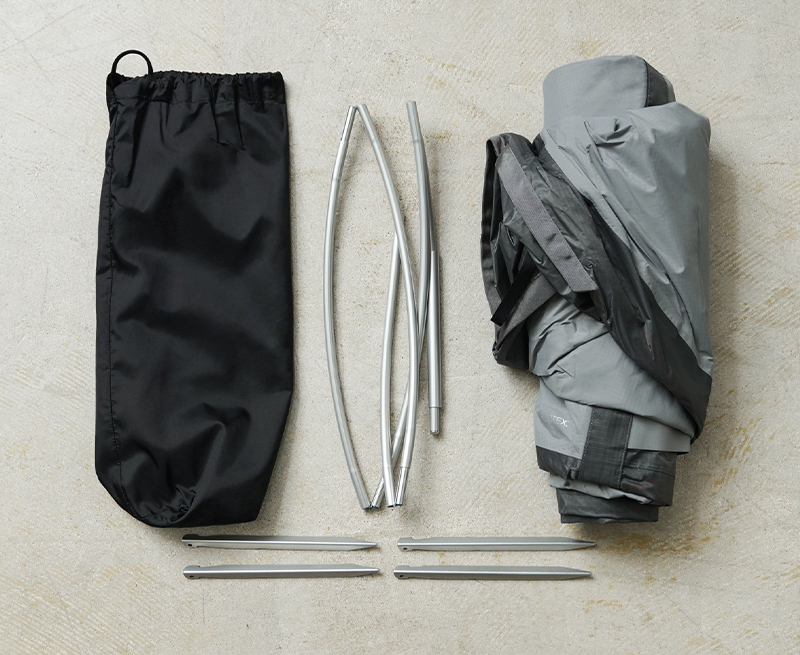 | 素材 | アッパー:2.5L Pertex® Shield NetPlus® with Hydrophilic Laminate,100% Recycled Nylon 30D Ripstop フロア:100% Nylon 40D Ripstop(PUコーティング) |
