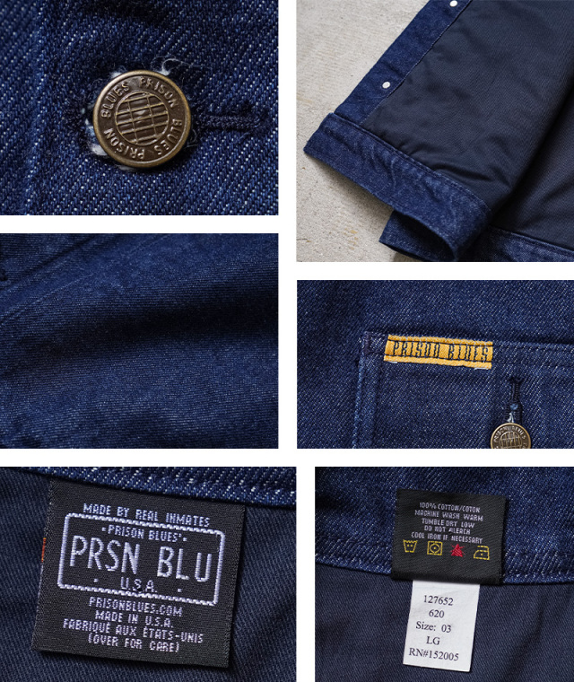 | 商品名 | PRISON BLUES プリズンブルース PRBS620 YARD COAT LINED ヤードコート デニム カバーオール MADE IN USA |