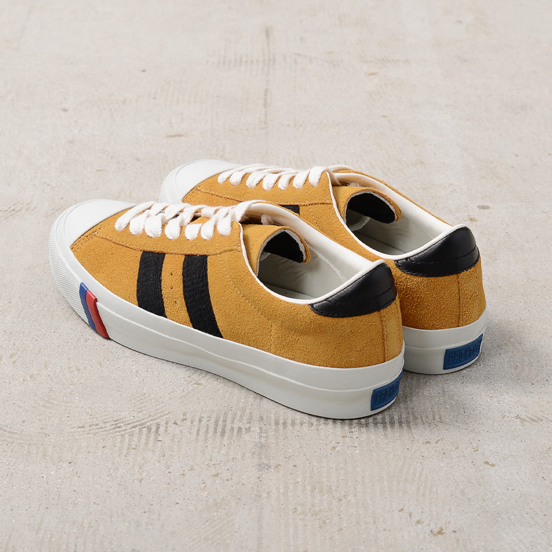 アメリカ発のスニーカーブランド PRO-Keds(プロケッズ)の「ROYAL PLUS LO(ロイヤルプラス ロー)」は、クラシックなコート系デザインに現代的な機能を取り入れたアップデートモデル。アーカイブに着想を得た洗練されたシルエットと、上質なスエードアッパーが特徴の一足です。アッパーには柔らかく高級感のあるスエード素材を採用。落ち着いた光沢としっとりとした質感が魅力で、履くほどに足に馴染み、風合いの変化も楽しめます。トゥ部分に配されたブルーとレッドのラインや、サイドのストライプなど、ブランドのアイコニックなディテールも健在。シンプルな中に程よい存在感を備えたデザインに仕上がっています。