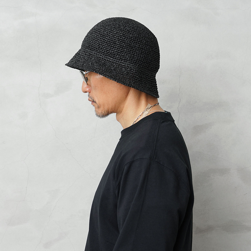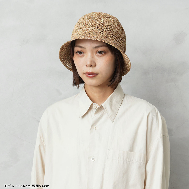 RACALの非常に軽量で丈夫な“ペーパー繊維”編み込んで仕立てた細編みのチューリップハットがWAIPER別注にて登場。ベーシックモデルよりも深めのクラウンにすることでフィット感が増し、風などで飛ばされにくく、安定感のある被り心地を実現しています。通気性に優れ蒸れにくく、暑い日でも日差しを避けながら快適な着用感。また、ペーパー繊維は静電気が発生しにくく、毛羽立ちを起こし難い特徴があるため長く愛用が可能です。