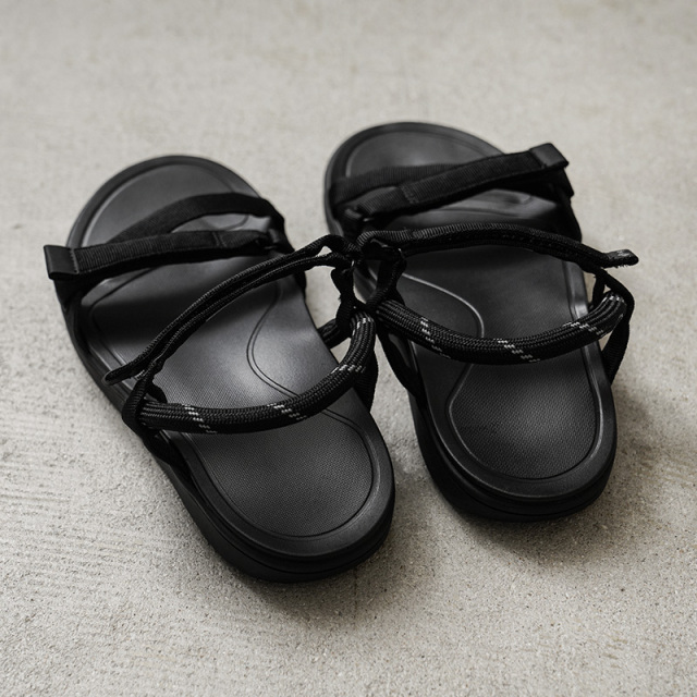 | 商品説明 | rig FOOTWEAR リグフットウェア tetiva RT テチーバ リカバリーサンダルのご紹介です。 品名:tetiva RT 品番:RG0030 近年開発されスポーツ界を中心に、ファッション業界でも注目されているリカバリーサンダル。 rigは日本生まれのリカバリーサンダルとして、日本人の足の特徴である「甲高・幅広」に重点をおき日本人にとって快適な履き心地を研究しました。 中でも、アスリートの遠征や登山での利用を考え設計された薄型のリカバリーソールサンダル「tetiva」が、よりミニマルで洗練されたデザインになって登場。 血行促進の機能はそのままにrig史上最薄なソールは、携帯性に特化しているので重ねても非常に薄く、バックパックのサイドやバッグのポケットに入れてもかさばりません。また足裏の保護や、登山時のためのグリップ力を高めるためアウトソールの全面に軽量ラバーを採用。硬質サンダルと比較すると膝腰などへの衝撃は約20%軽減。rigオリジナルのフットベット形状によりふくらはぎの血流量を1.5倍~2倍増幅して回復を促します。 足のホールドを確保するテープを最低限に減らして構成され、ベルクロでフィット感を細かく調整可能。後ろ側から足を通すとヒール部分がアジャスターとなり脱ぎ履きがスムーズなスライドサンダルとしても使用可能な2wayタイプです。 また、足指の中で一番負荷のかかる親指と人差し指の間には小さな膨らみを備えることで、足指に無駄な力が入らず、自然にリラックスした快適な歩行のサポートをします。 アッパー素材を極限まで少なくし、草鞋のような雰囲気で、まるで裸足で歩いているようなリラックス感を得られます。開放感のある鼻緒がないデザインは、靴下を履いたままでも履けて、日々のコーディネートのアクセントとしても魅力的なアイテムです。。 |