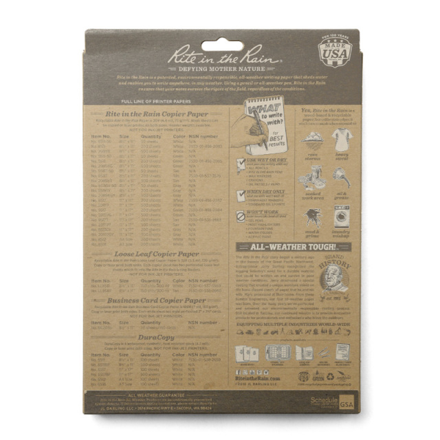 | 素材 | Rite in the Rain Paper(75g/m²) |