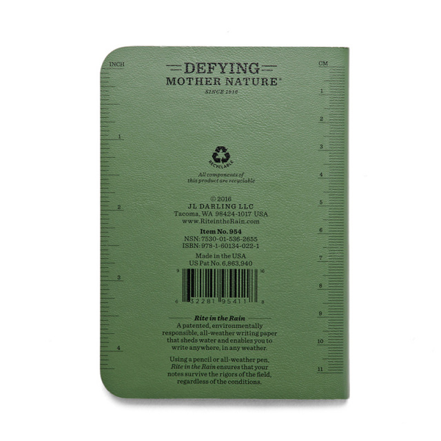 | 素材 | Rite in the Rain Paper 表紙・裏表紙は紙ベースのField-Flex製 |