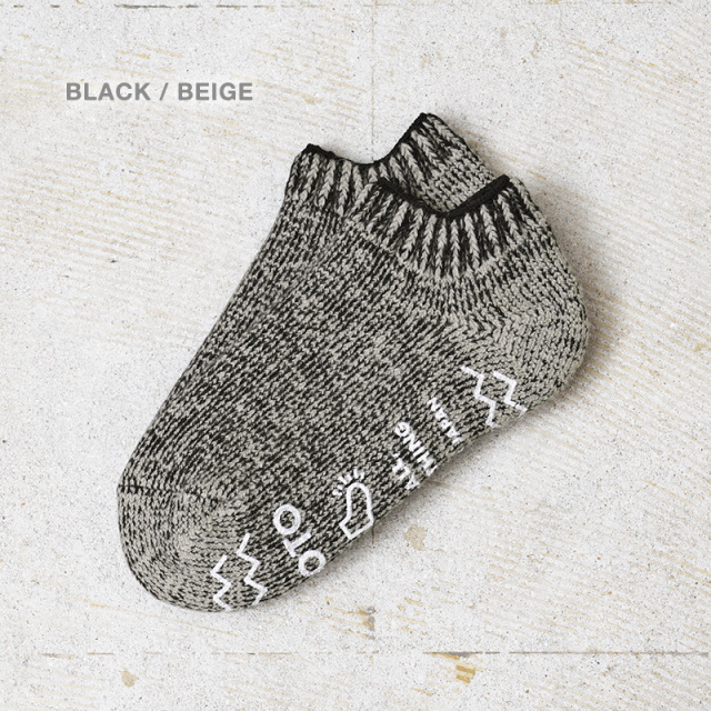 | 商品説明 | ROTOTO ロトト PILE SOCKSLIPPER パイル ソックススリッパ 杢カラー 日本製のご紹介です。 品名:PILE SOCKSLIPPER 品番:R1488 ROTOTOより、スリッパに替わる新しい履き物として考案したソックスリッパの2色の糸をミックスした杢カラーが登場。 国内の工場で丁寧に編み立て、保温性とやさしい肌あたりが魅力のアクリルとウールの混紡糸を、パイル状に編み込むことで絨毯のようなふかふかな感触。ゆったりとした編み地で着脱のしやすいショート丈に仕上げられており、締め付け感がなく、オーバーソックスとしての着用も可能です。 目を惹くデザイン性のある足底のプリントは、滑り止めとしての機能も果たし、フローリング上などでも安心。杢カラーなので、汚れや毛玉などがより目立ちにくく、長く愛用することが可能です。 男女共に喜ばれる秋冬のプチギフトとしてもお勧めの逸品です。 ※乾燥機の使用は縮みの原因となりますのでお避けください。 MADE IN JAPAN |