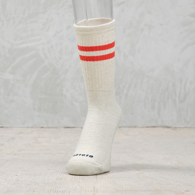 | 商品説明 | ROTOTO ロトト クラシック アスレチック 3パック クルーソックス 日本製 のご紹介です。 品名:CLASSIC ATHLETIC 3PACK CREW SOCKS 品番:R1575 ROTOTOより、オールシーズン履ける、アスレチックスタイルの3Pクルーソックスが登場です。 長繊維に落ち綿(短繊維)を配合したラフィ(RAFFY)と呼ばれるコットンのムラ糸を使用し、国内紡績工場で50年以上変わらない製法で作りあげた一足。 ゆっくり紡がれたムラ糸は自然な凸凹感が特徴。肌に当たる面積も少なくなるので、蒸れにくく快適です。独特な風合いボディに絶妙なラインカラーがスニーカーと相性抜群。 長すぎない程よい丈感でシーズン通して着用でき、ギフトアイテムとしても最適です。 ※乾燥機の使用は縮みの原因となりますのでお避けください。 MADE IN JAPAN |