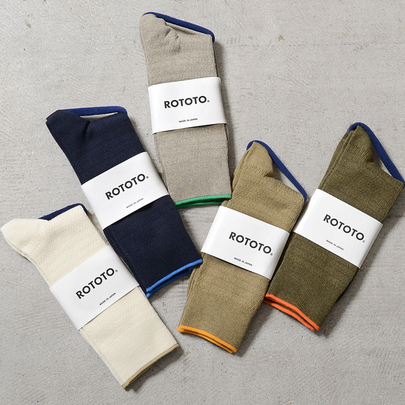 ROTOTOより、ヴィンテージミリタリーを彷彿とさせる、サーマルソックスが登場です。生地はコットンとナイロンの混紡素材。コットンが持つ、サラッと自然な肌触りとナイロンの耐久性と伸縮性で快適に着用可能です。 リンキングと言われる、つま先の縫い目を滑らかにつなぐ仕上げが施されていることで、靴擦れを防ぎ、まるで履いていないかのような心地良いフィット感を実現しています。