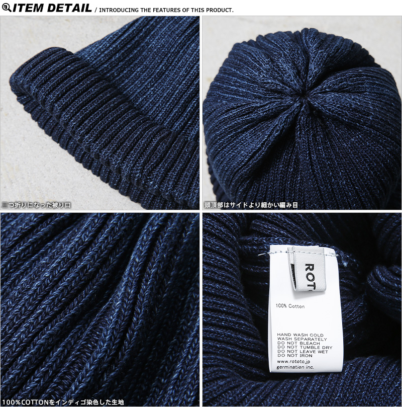| 商品名 | ROTOTO ロトト R5050 INDIGO COTTON ROLL UP BEANIE インディゴ コットン ロールアップビーニー 日本製 |