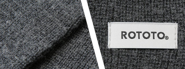 ROTOTOより、通称“チューブマフラー”と呼ばれるミルスペックのマフラーからインスピレーションを得て製作された“ソックストール”が登場。靴下の編み立て機を使用して作られた生地を採用。従来のソックストールより、セーターなどにも使われるウールの比率が高い糸にアップグレードしました。 巻いたときに空気の層ができるため保温効果はもちろん、肌触りもよく快適に使用可能です。