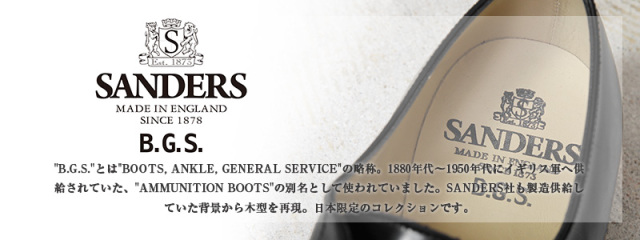 | ブランド | ![]() Sanders & Sanders Ltd.は1873年にウィリアム・サンダースとトーマス・サンダースの兄弟によってイギリス、ラシュデンに設立された約150年の歴史を持つ、靴の聖地ノーサンプトン最後の実力メーカー。 グッドイヤー製法の発展と1910年代のイギリス軍への軍靴供給契約をきっかけに大きく発展、5世代続くファミリーマネジメントを今日まで継続しつつ、今では世界中にクライアントをかかえる老舗シューメーカーとして知られています。 その他のSANDERS サンダースはこちら |
