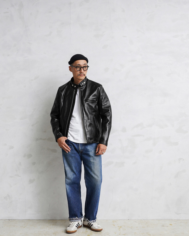 | 商品説明 | Schott ショット USA LINE 641HH ホースハイド シングルライダース レザージャケット MADE IN USAのご紹介です。 品番:641HH 100年以上の歴史を持ち、ライダースジャケットの代名詞ともいえるSchottブランド。1928年に世界で初めてフロントジッパーを採用したライダースジャケット"Perfecto"シリーズを発売して以来、時代を超えた永遠の定番として今なお多くの人々を魅了しています。 当店でも定番として613USや641XXなど米国製のアイテムを展開しておりますが、今回ご紹介するこちらはそれらとは一味違う本国企画の「Schott USA LINE」。先述いたしました613USや641XXといったモデルは日本人体系に合わせて多少のリサイズが施されているのに対し、USA LINEは言わばそれらのオリジナル。長きにわたって愛されてきた伝統のスタイルを今に踏襲するアイテムたちです。 Schottのダブルライダース代表「613」に対し、シングルライダースの代表「641」をホースハイドで贅沢に仕上げました。 ボディには生産量が少なく貴重なホースハイド(馬革)を使用。ホースハイドは光沢があり、重厚感がありつつもしなやか手触りが特徴です。使えば使うほど柔らかくなじんでいくので、長い時間愛着をもって着続けられる楽しみがあります。ライニングは中綿入りなので防寒性もあり、袖通しもスムーズにできる仕様です。 スタンドカラーのスッキリとした首元と全体的にシンプルなデザインが特徴で、ミニマルで洗練された印象を与えます。肩周りは動かしやすいようアクションプリーツになっており、脇下に動かしやすいパターンを採用しさらに通気性をよくするベンチレーションを配置。上まで閉められるチンストラップや、防風性を高めグローブも着用しやすいジッパー仕様になっている袖口などライダースジャケットならではの機能性にも優れています。 ポケットは左胸・両サイド・インナーポケットの計4箇所。それぞれのジッパーやボタンはSchottのロゴ入りのデザインになっており細部にまでこだわりを感じるディテールです。 昨今ヴィンテージというカテゴリが再注目されているなか、こういった歴史ある老舗レザーブランドのオリジナルスタイルは見逃せないところではないでしょうか。国内では取り扱いも少ないシリーズです。ぜひこの機会をお見逃しなく。 MADE IN USA |