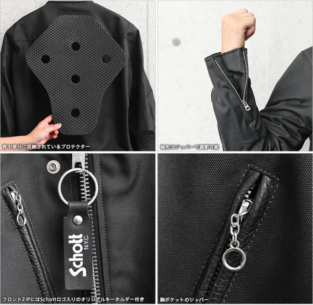 | 商品説明 | Schott ショット ダブル ブレスト ジャケット for RIDING ライディング ジャケットのご紹介です。 品名:DOUBLE BREST JACKET for RIDING 品番:3102080 近年Schottの定番モデルで人気のダブルブレストをベースに作られたライディング ジャケットが入荷しました。 生地にはポリウレタンコーティングを施し撥水加工がされていますので多少の雨なら弾くことができ、雨の日にも安心な一枚です。襟、ポケット玉縁部分はSchottらしい牛革仕様になりデザインのアクセントになっています。 バイクを乗る事を前提として作られたライディングポジションデザイン、脱着式CE規格プロテクター(肘、肩)と背中部分のプロテクターを標準装備しています。バイクに乗らない際には脱着式のプロテクターを外して頂ければタウンユースとしても活躍すること間違いなしです。フロントZIPにはSchottロゴ入りの本革使用のオリジナルキーホルダー付き。愛車のキーホルダーにも使用できます。 ライダースジャケットの代名詞ともいえるSchottの本格的ライディングジャケットです。 当店はSchott正規販売店ですので安心してお買い求め下さい。 |