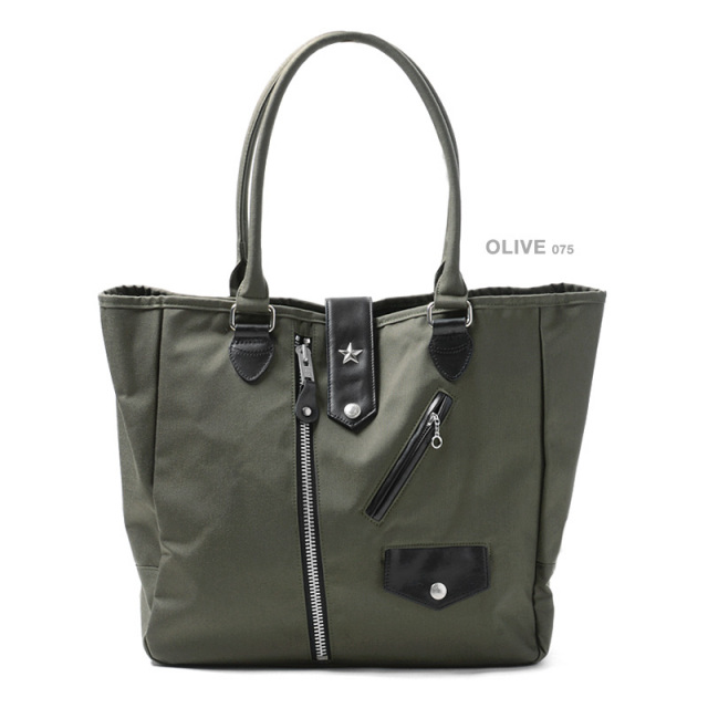 | 商品説明 | Schott ショット 3169003 NYLON RIDERS トートバッグのご紹介です。 品名:NYLON RIDERS TOTE BAG 品番:3169003 Schottの代名詞でもあるワンスターのデザインを落とし込んだトートバッグが登場! アイコンの星型スタッズがフロント側に来るように配置されており、粋なワンポイントとなってます。 メインルーム内には小物類やタブレットの収納など、自由自在に使えるインナーポケットが備えられており、コンパクトながら十分な容量と使い勝手を確保。1泊2日の小旅行やアウトドアに最適です。 また、従来のワンスターに使用しているレザーではなく、軽さや耐久性を重視したコーデュラナイロンを採用し、要所にレザーを使用することで一味違う存在感に。ライダースジャケットと共に着用しても、違和感なくコーディネートできるデザインに仕上げられています。 備考: [メイン開閉]ホックボタン 外側/ファスナーポケット×2、フラップポケット×1 内側/オープンポケット×5、ペン挿し×2 収納できるサイズの目安:A3 |