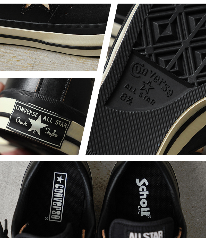 Schottのライダースジャケットの代名詞でもある通称“ワンスター”と、CONVERSEの“ワンスター”のデザインディテールが融合したスペシャルアイテムです。