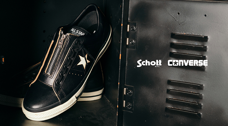 アメリカ発の老舗レザーブランド「Schott」と、世界的なシューズブランド「CONVERSE」がコラボレーションしたこだわりのスニーカーが登場。