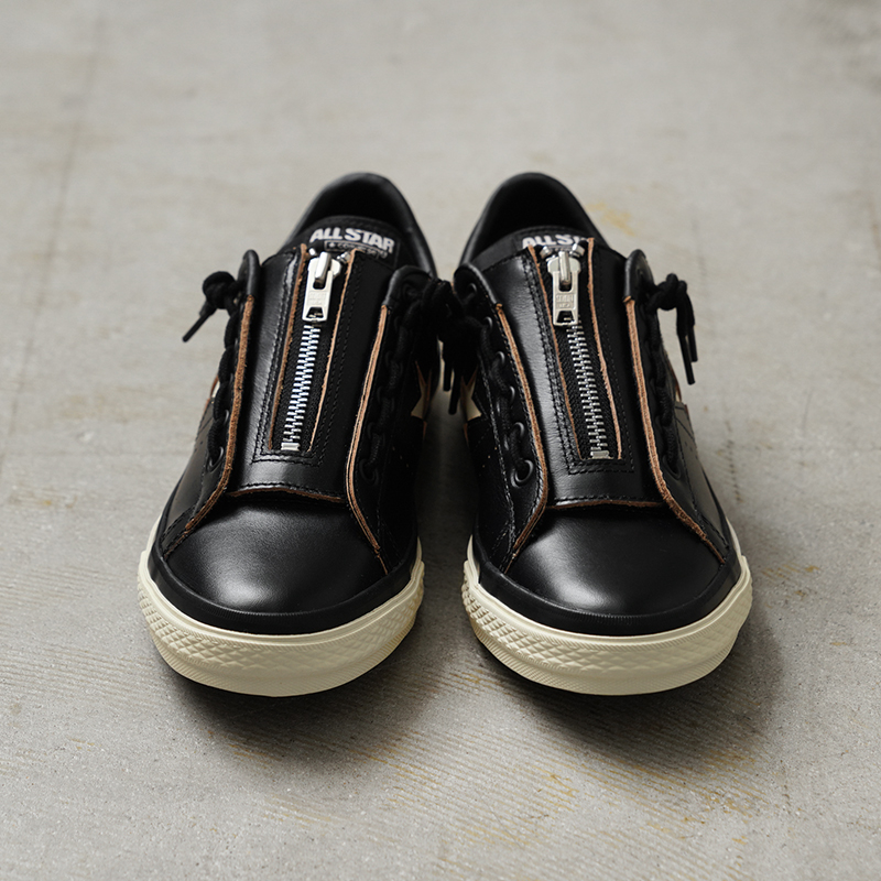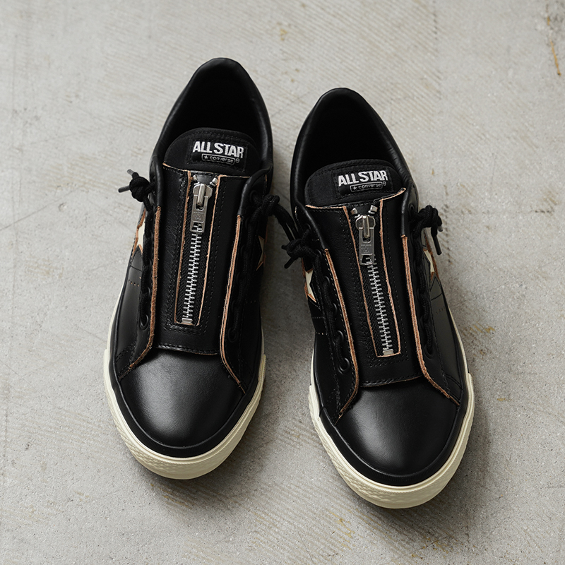 アメリカ発の老舗レザーブランド「Schott」と、世界的なシューズブランド「CONVERSE」がコラボレーションしたこだわりのスニーカーが登場。Schottのライダースジャケットの代名詞でもある通称“ワンスター”と、CONVERSEの“ワンスター”のデザインディテールが融合したスペシャルアイテムです。アッパーには、Schottのヴィンテージライダースジャケットを彷彿とさせるクロムエクセル(Chromexcel)茶芯レザーを使用。履き込むほどに中の茶色が露出し、独特の経年変化を楽しむことができます。フロントにジッパーを配置することで、ライダースジャケットのような無骨なデザインと、スムーズな着脱を両立。生成り色のテープや、1970年代のモデルを意識したディテール、さらに両ブランドのロゴがプリントされたインソールなど、細部までこだわりが詰まっています。