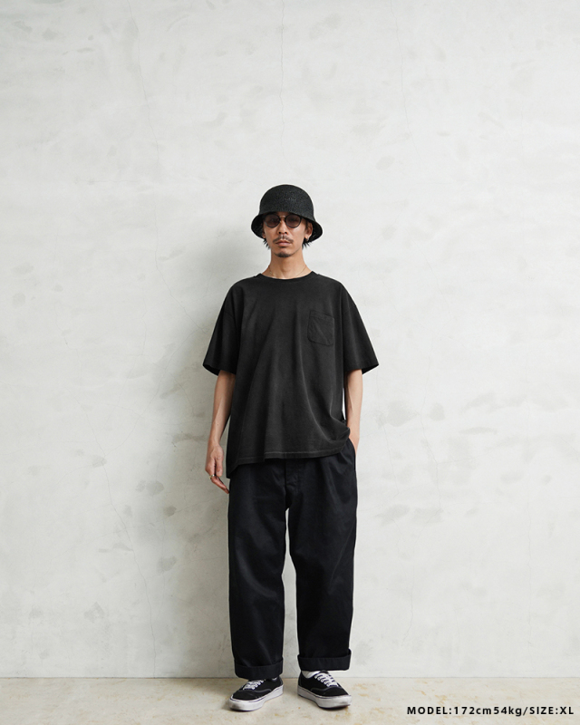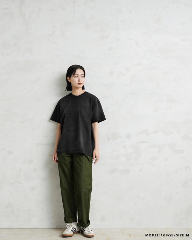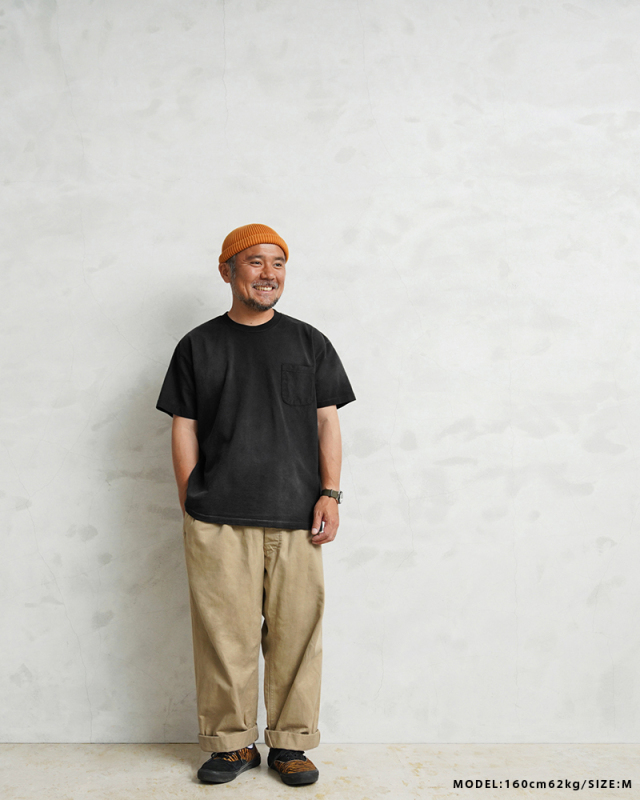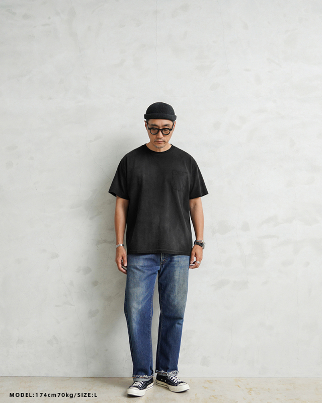 | 商品説明 | SCREEN STARS×WAIPER ”Slack” S/S クルーネック ポケットTシャツ VINTAGE BLACK のご紹介です。 品番:459WP ご好評いただいているSCREEN STARS×WAIPERのコラボ第三弾。 今回は毎日着ても飽きの来ないベーシックなポケットTシャツを製作しました。 7.4ozという程よい厚みの天竺生地に古着テイストのヴィンテージ加工(日焼け加工)を施し、着用・洗濯を繰り返すことでさらに経年変化を楽しめる仕様に。加工による個体差もあるため新品にも関わらず1点物を購入したかのような高揚感を味わえます。 シルエットは、程よく緩いボックスタイプのため流行りにとらわれず長く着用いただけます。 縫製は袖、裾ともにシングルステッチ。さらに編みは丸胴仕様と80'sのヴィンテージTシャツに多く見られるディテールを再現。一見シンプルなポケットTシャツながらも、"分かる人には分かる"という語れるようなこだわりを詰め込み、WAIPER限定カラーの80's仕様のペーパータグがよく似合う一枚に。 着込んでいくうちに生まれる丸胴Tシャツ特有の斜行も味となり、これもまた一入です。 今回このTシャツをコーデをサボってこればかりを着てしまう事から"SLACK"(スラングでサボる)と銘打ちました。是非とも皆様のデイリーウェアの一枚に追加してください。 SCREEN STARS専用パッケージに入れて、お届け致します。 |