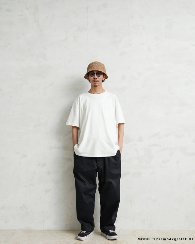 | 商品説明 | SCREEN STARS×WAIPER ”Slack” S/S クルーネック ポケットTシャツ WHITE のご紹介です。 品番:460WP ご好評いただいているSCREEN STARS×WAIPERのコラボ第三弾。 今回は毎日着ても飽きの来ないベーシックなポケットTシャツを製作しました。 透け感が気にならない7.4ozという程よい厚みの天竺生地にはワンウォッシュ加工を施しているため、届いた瞬間から着込んだようなざらつきがあり、肌に馴染むナチュラルなホワイトカラーに仕上がっております。 シルエットは、程よく緩いボックスタイプのため流行りにとらわれず長く着用いただけます。 縫製は袖、裾ともにシングルステッチ。さらに編みは丸胴仕様と80'sのヴィンテージTシャツに多く見られるディテールを再現。一見シンプルなポケットTシャツながらも、"分かる人には分かる"という語れるようなこだわりを詰め込み、WAIPER限定カラーの80's仕様のペーパータグがよく似合う一枚に。 着込んでいくうちに生まれる丸胴Tシャツ特有の斜行も味となり、これもまた一入です。 今回このTシャツをコーデをサボってこればかりを着てしまう事から"SLACK"(スラングでサボる)と銘打ちました。是非とも皆様のデイリーウェアの一枚に追加してください。 SCREEN STARS専用パッケージに入れて、お届け致します。 |