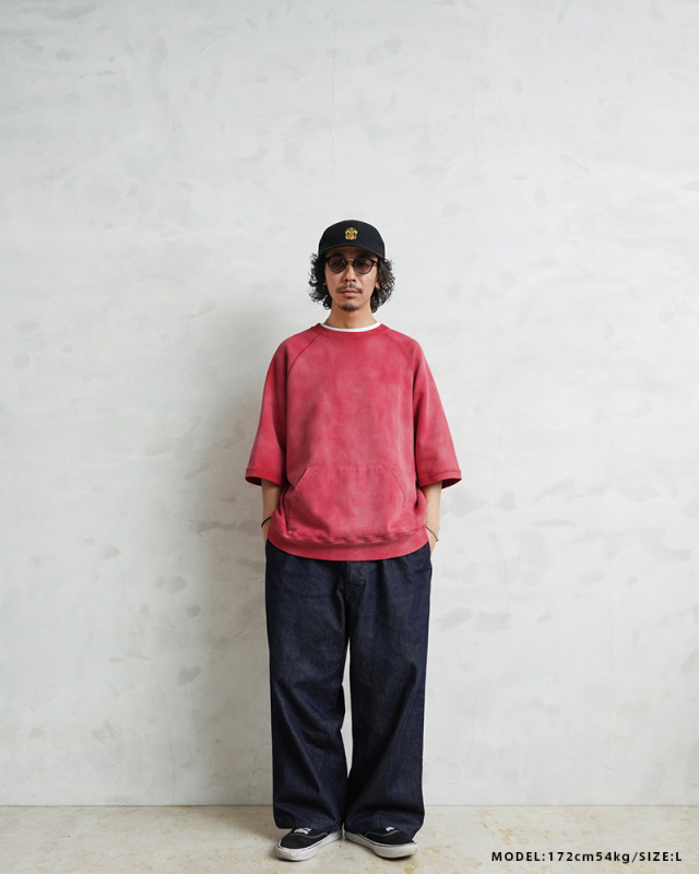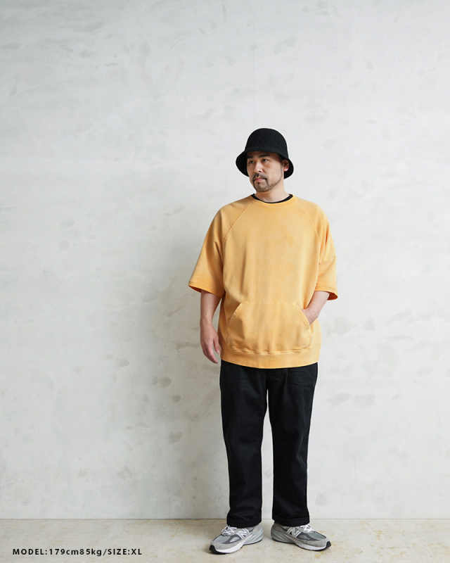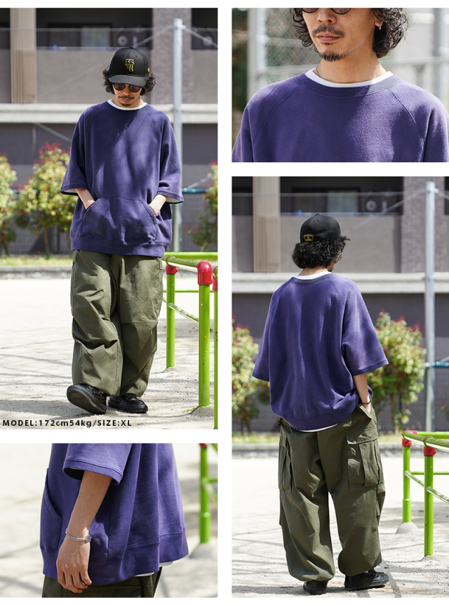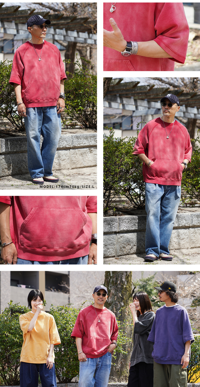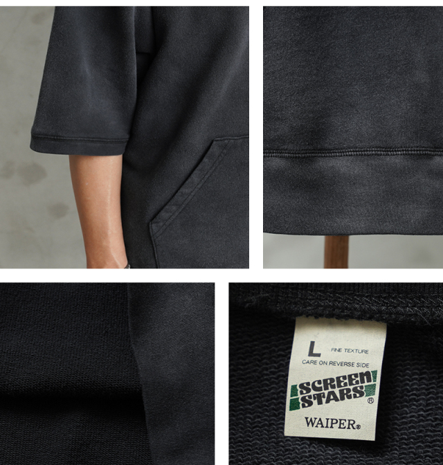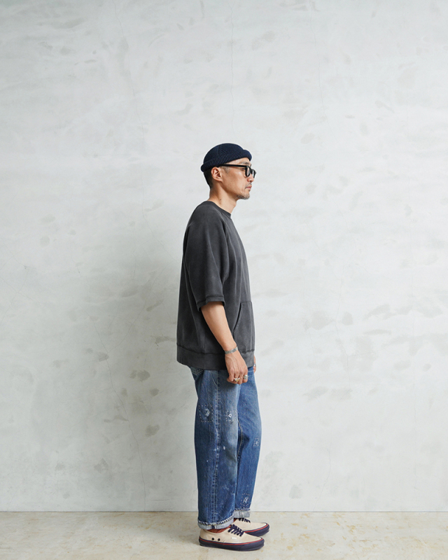 | 商品説明 | SCREEN STARS×WAIPER グランスリーブ S/S スウェットシャツ VINTAGE FADE のご紹介です。 品番:2522-433WP 今回は60’sヴィンテージの雰囲気漂う半袖スウェットを製作。 ディテールは60年代以降の半袖スウェットに多くみられるラグランスリーブを採用。 元々ラグランスリーブとは、クリミア戦争時にイギリス軍の最高司令官であったラグラン卿が、肩を負傷した兵士が着脱しやすいようにと考案。現在でも英国を代表するブランドの名作ジャケットにもしばしば採用されており、現代では腕を動かしやすいというところからスポーツウェアでは定番のディテールです。 そんな背景もあり英国から月日をかけ海を渡り、米国にその技術が根付いた60年代以降からは多くこのラグランスリーブが採用されており、当時のビンテージアーカイブはいずれも希少価値が高く1つ1つがマスタピースとなっています。 今回はそんな当時のアーカイブにリスペクトを込めながらも、より多くの方が着用しやすいようWAIPERなりの提案を詰め込みました。 生地は長い間着られるよう中肉の裏毛のコットン生地を採用。 そこに何度も洗濯と天日干しを繰り返すことから生まれる日焼けのような加工を施し雰囲気も抜群です。ここから実際に洗濯を繰り返すことより、さらに表情も変わってくるのでまだまだ変化をお楽しみいただけます。 腹部にはカンガルーポケットを設け、秋冬での着用でも手を温められるような仕様に。 シルエットは一枚での着用はもちろんの事、長袖Tシャツとのレイヤードも想定し少し緩めに設定。裄丈・着丈を絶妙に調整しているためちょうどいいバランスで着用いただけます。 カーゴパンツ・デニム・チノなどあらゆるパンツとも相性抜群で、差し色としても役に立つ自信作の半袖スウェットです。 |