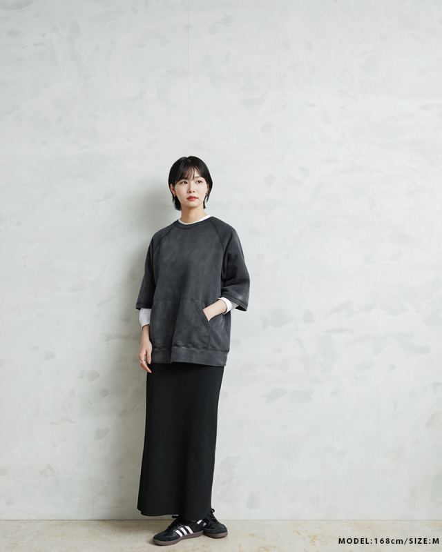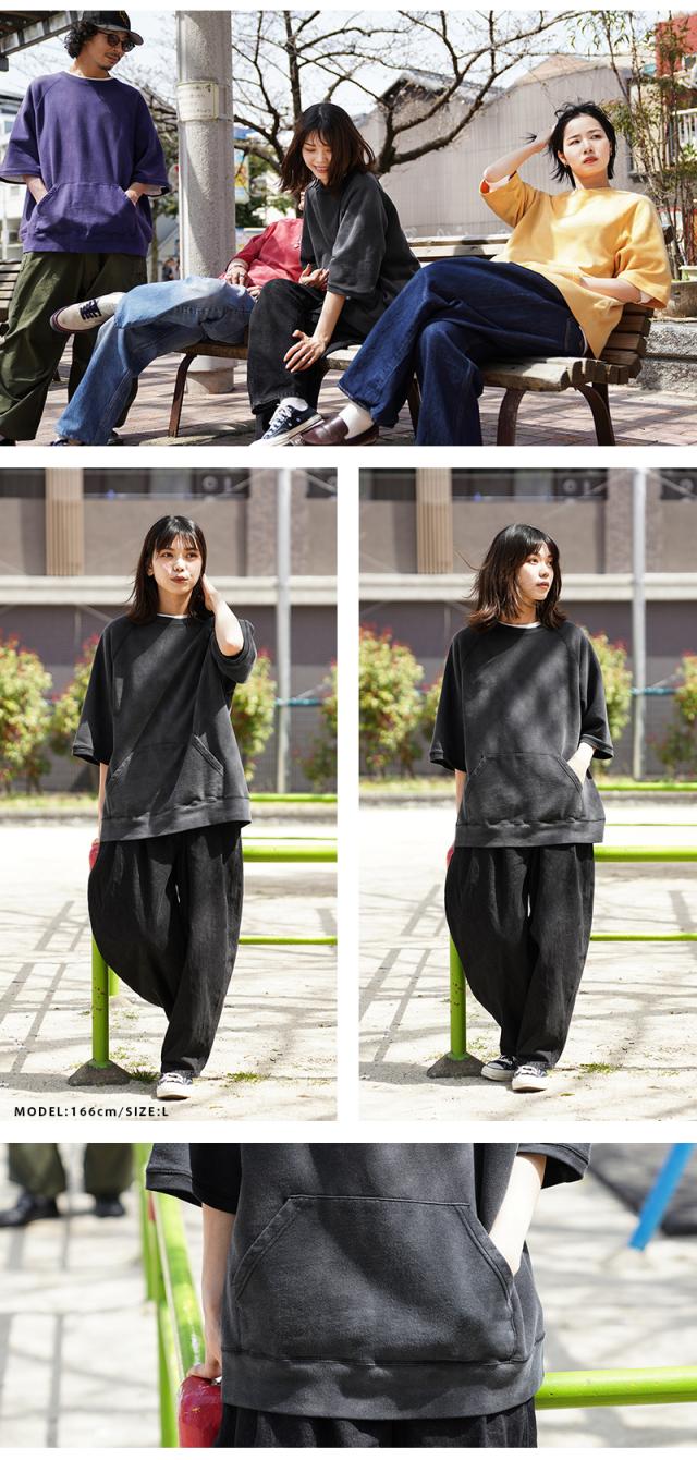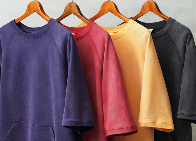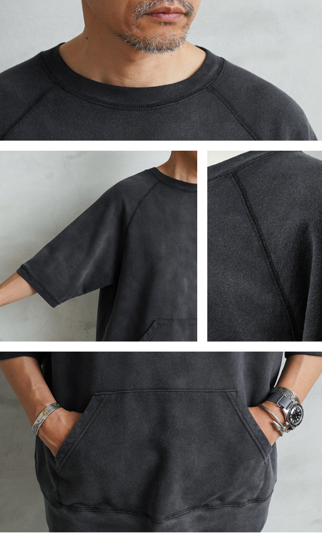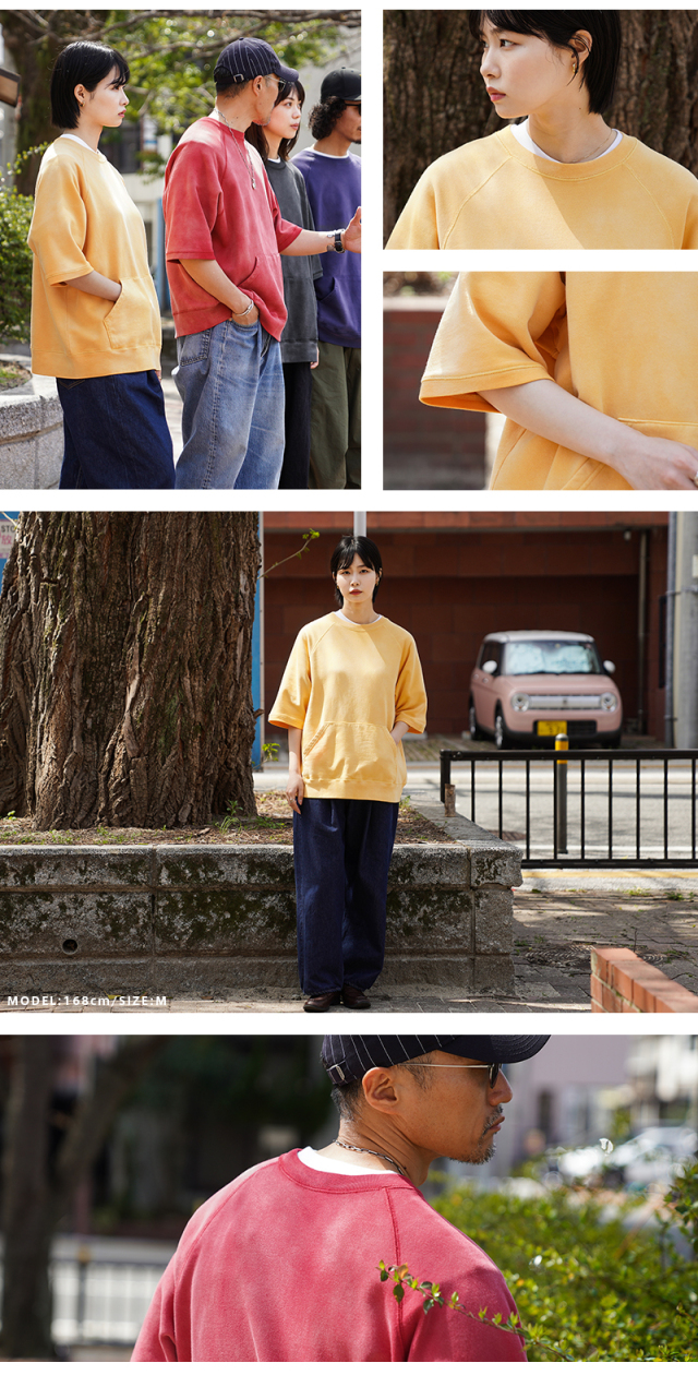 | 商品説明 | SCREEN STARS×WAIPER グランスリーブ S/S スウェットシャツ VINTAGE FADE のご紹介です。 品番:2522-433WP 今回は60’sヴィンテージの雰囲気漂う半袖スウェットを製作。 ディテールは60年代以降の半袖スウェットに多くみられるラグランスリーブを採用。 元々ラグランスリーブとは、クリミア戦争時にイギリス軍の最高司令官であったラグラン卿が、肩を負傷した兵士が着脱しやすいようにと考案。現在でも英国を代表するブランドの名作ジャケットにもしばしば採用されており、現代では腕を動かしやすいというところからスポーツウェアでは定番のディテールです。 そんな背景もあり英国から月日をかけ海を渡り、米国にその技術が根付いた60年代以降からは多くこのラグランスリーブが採用されており、当時のビンテージアーカイブはいずれも希少価値が高く1つ1つがマスタピースとなっています。 今回はそんな当時のアーカイブにリスペクトを込めながらも、より多くの方が着用しやすいようWAIPERなりの提案を詰め込みました。 生地は長い間着られるよう中肉の裏毛のコットン生地を採用。 そこに何度も洗濯と天日干しを繰り返すことから生まれる日焼けのような加工を施し雰囲気も抜群です。ここから実際に洗濯を繰り返すことより、さらに表情も変わってくるのでまだまだ変化をお楽しみいただけます。 腹部にはカンガルーポケットを設け、秋冬での着用でも手を温められるような仕様に。 シルエットは一枚での着用はもちろんの事、長袖Tシャツとのレイヤードも想定し少し緩めに設定。裄丈・着丈を絶妙に調整しているためちょうどいいバランスで着用いただけます。 カーゴパンツ・デニム・チノなどあらゆるパンツとも相性抜群で、差し色としても役に立つ自信作の半袖スウェットです。 |