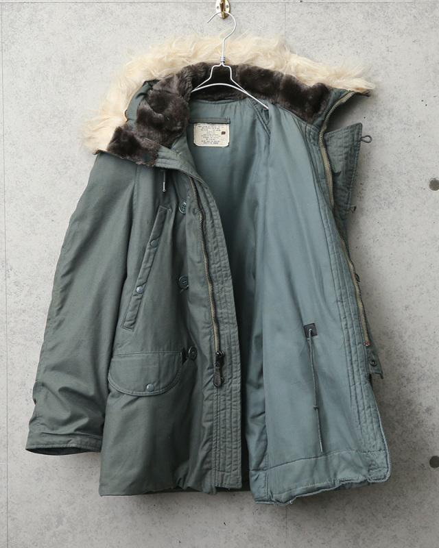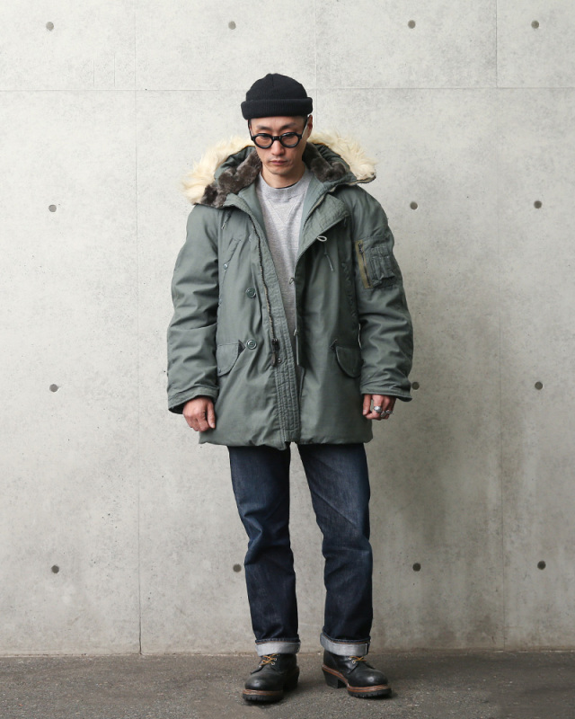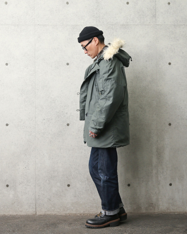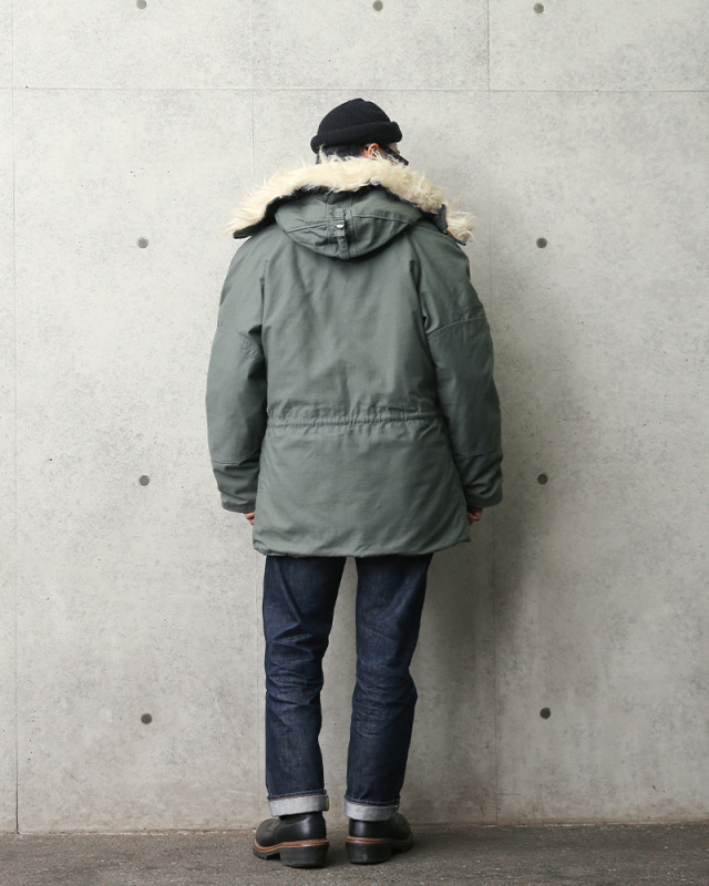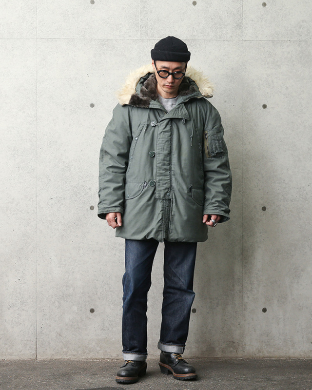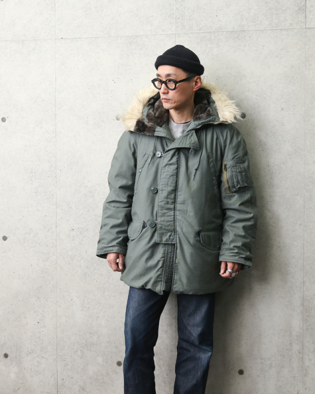 希少 実物 USED 米軍 N-3B フライトジャケット のご紹介です。 制式名称:PARKA,EXTREME,COLD WEATHER TYPE N-3B ここ数年現地買付でもほとんど出なくなり、高騰が激しい希少な米軍N-3BジャケットがUSEDですがGOODコンディションで入荷しました。 これぞミリタリーヴィンテージウェアーの代表格ではないでしょうか。 近代ミリタリーの防寒性が高いと言えばレベル7ですが、それともまた違う昔からの防寒アウターとして、ミリタリー界最高峰の優れものです。 なんだかんだ言ってもこのデザインは普遍ですね! いつの時代にも古くならないこのデザインはまさに王道だと思います。 通常アラスカンジャケットと言われ極寒地で着用出来る様に作られています。 フード部分の毛は吹雪でも前が見え耐えられる様に工夫されていますし、表生地は風を通さないように、そして中綿は保温に良い素材が使われています。 手袋着用で手を入れることが多い為 ポケットは大きめで使いやすい前に縦に入れるポケットが2つ、その上に大き目のサイドポケットが2つ、前合わせは2重になり、前ファスナーに加えてボタン留めになっています。 ボタンも手袋をしたままで留めやすいように大きめで、全て機能的に使いやすく工夫されています。 正直もうこのN-3Bをまとまった数見つけることが本当に困難です。 持っていて損はないアイテムだと思いますので、この機会に着用にコレクション用に是非! |