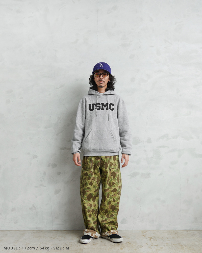 米軍への数多くのトレーニングウェア供給実績を持つ老舗ブランドSOFFEより、U.S.M.C.(米海兵隊)のプルオーバー スウェットが入荷しました。一般のラインでは販売されていない、軍関係向けに生産されたミリタリーラインのアイテムです。フロントには、厚めのラバープリントで描かれたカレッジロゴがインパクトがありながらも使いやすいデザインに仕上がっています。