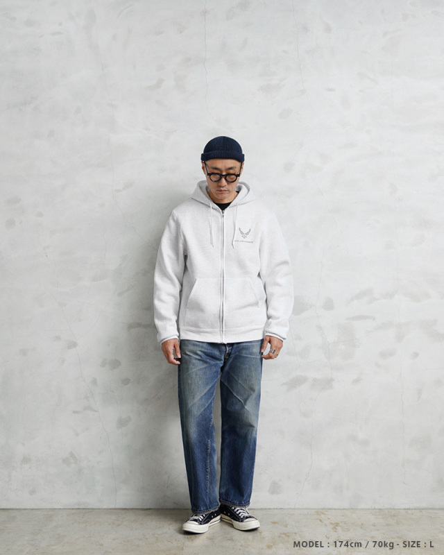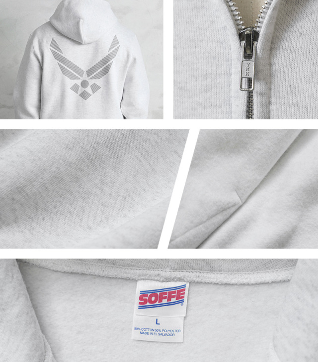| 商品名 | SOFFE ソフィー D1075419 OFFICIAL LICENSE U.S.AIR FORCE トレーニング スウェット ジップ フーディ |