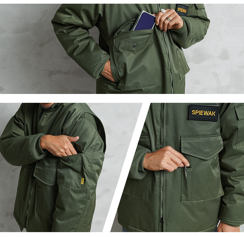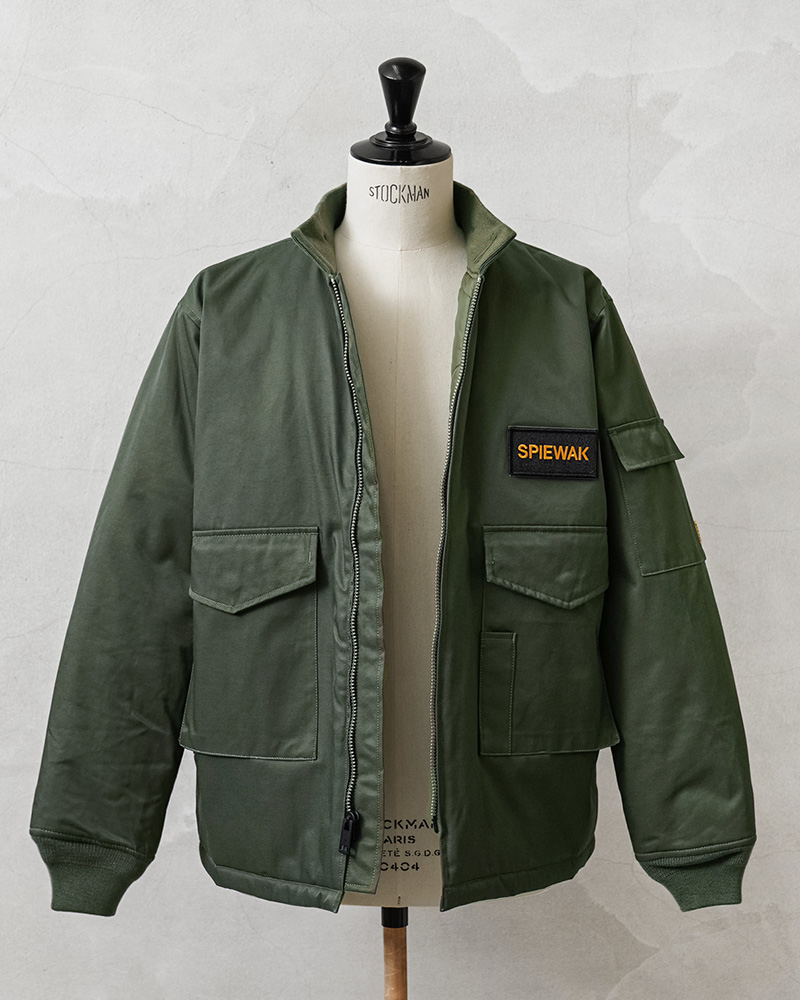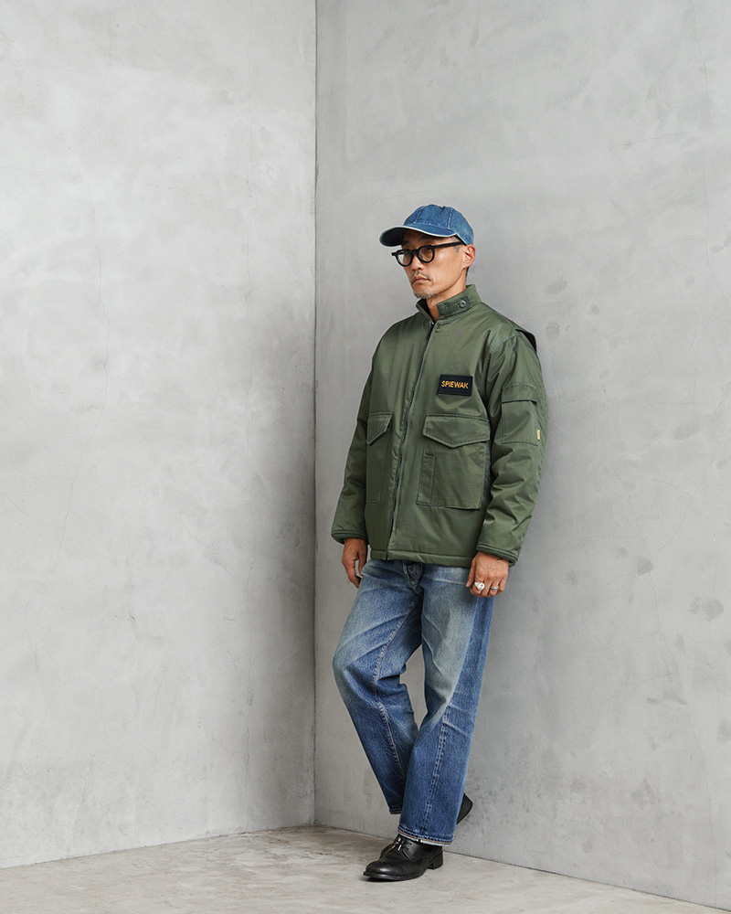 確かな技術を持つSPIEWAKから、オリジナルのディテールを継承しつつ、現代的なシルエットに再構築された通称G-8 WEPジャケットが登場しました。1950年代中期から1970年代中期にかけて米海軍で採用されていたWEPジャケット、通称G-8。1950年代後半のモデルのラベルに「WEP」と印字されていたことが、その名の由来。フラップ付きの大型パッチポケット、スタンドカラー+フロントの二重構造(比翼仕様)、伝統的なショート丈G-8をロング化し、単なるコートではなく“フライトジャケットの延長”にある武骨さを残したデザイン。直線的シルエットはモード寄りの印象で、体型を選ばずスタイルアップも狙える構造になっています。